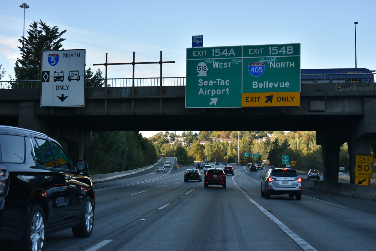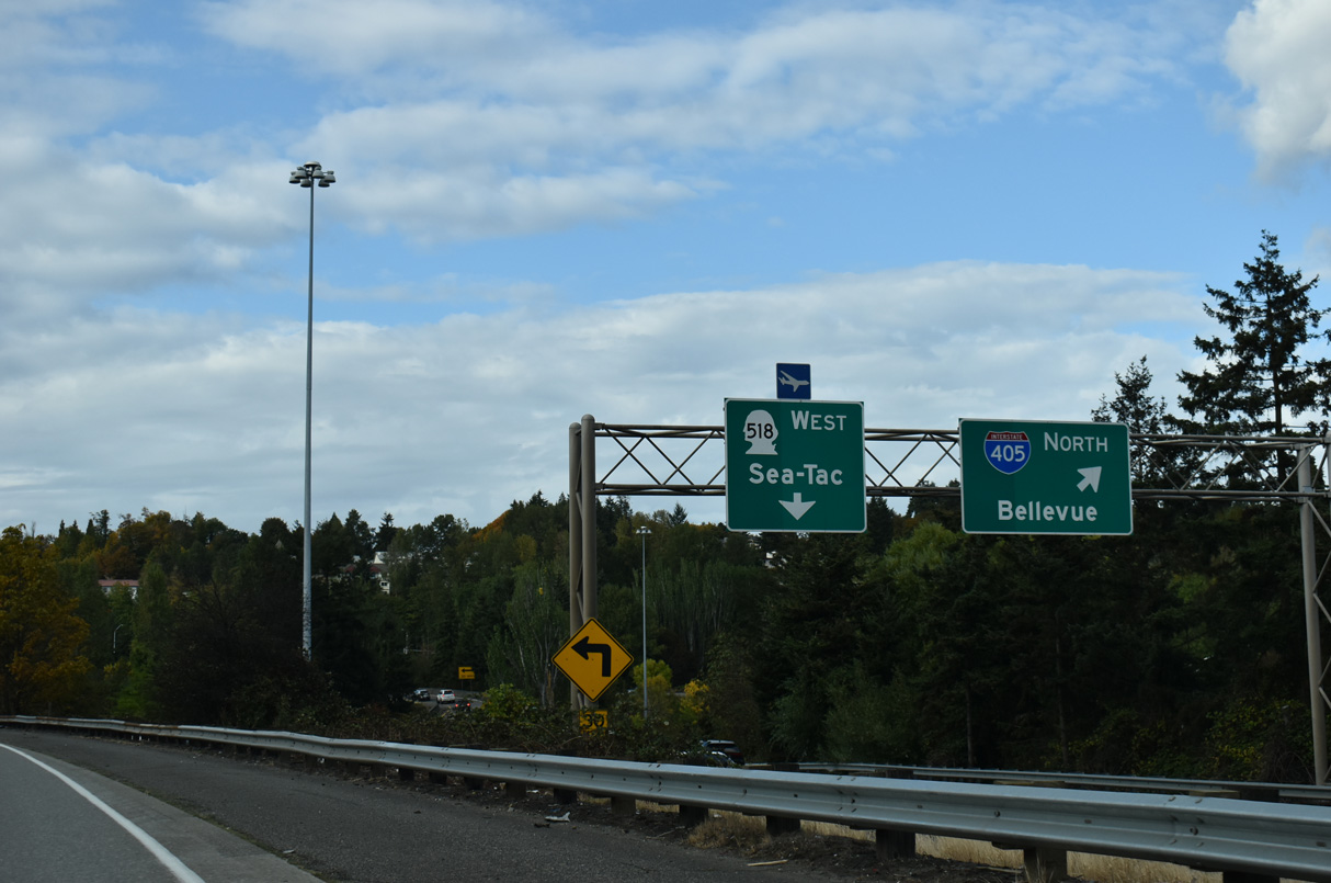 Exit 154 B connects with I-405 north to Renton, Newcastle and Bellevue. Exit 154 A joins the left lanes of SR 518 west to Seatac and Burien.