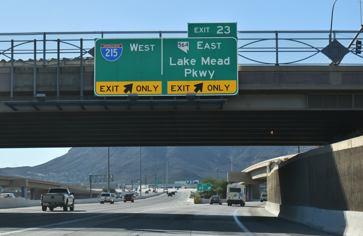 SR 564 (Lake Mead Parkway) spurs 8.41 miles east from the Henderson Bowl interchange (Exit 23) to Lorin Williams Parkway ahead of the entrance into Lake Mead National Recreation Area.