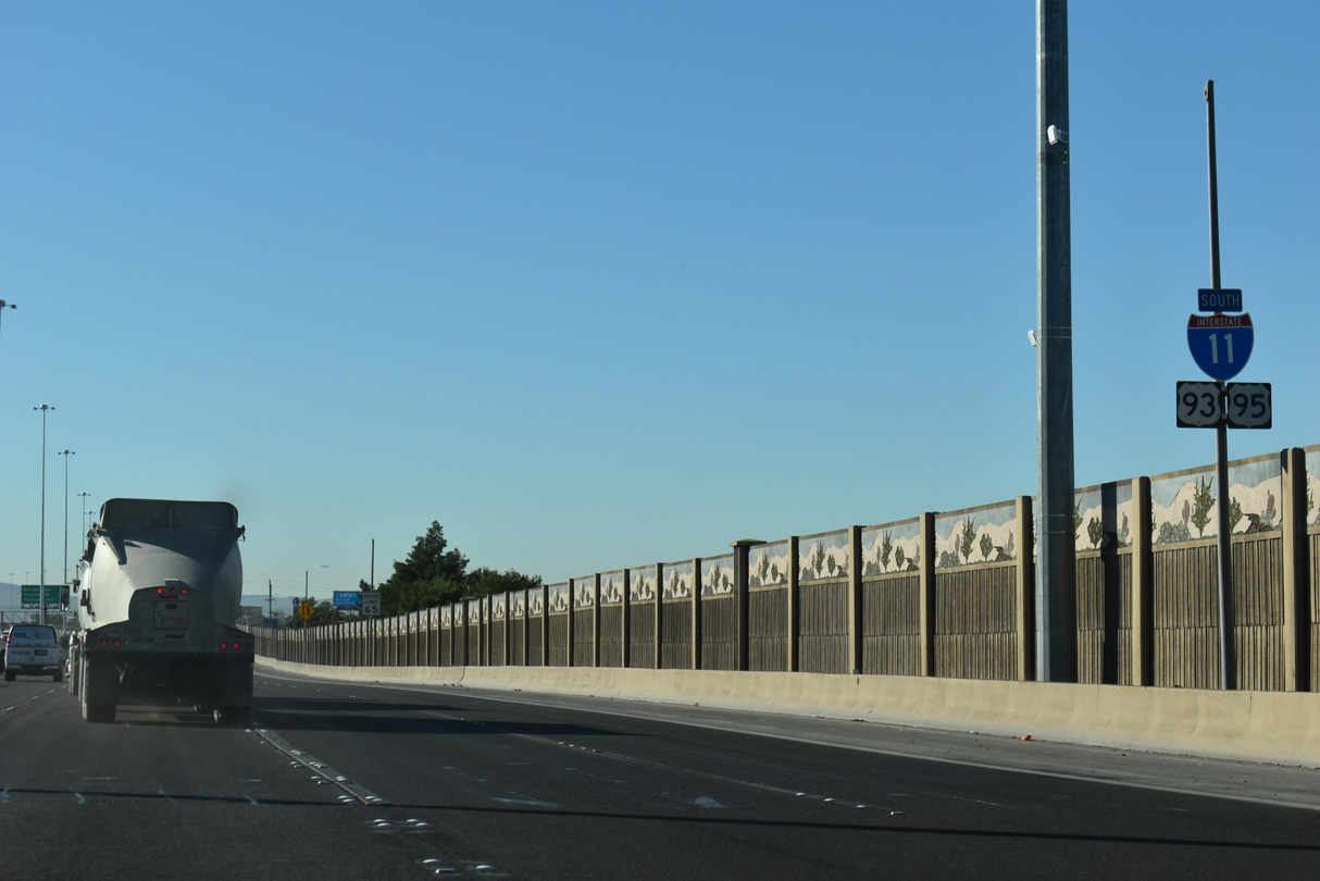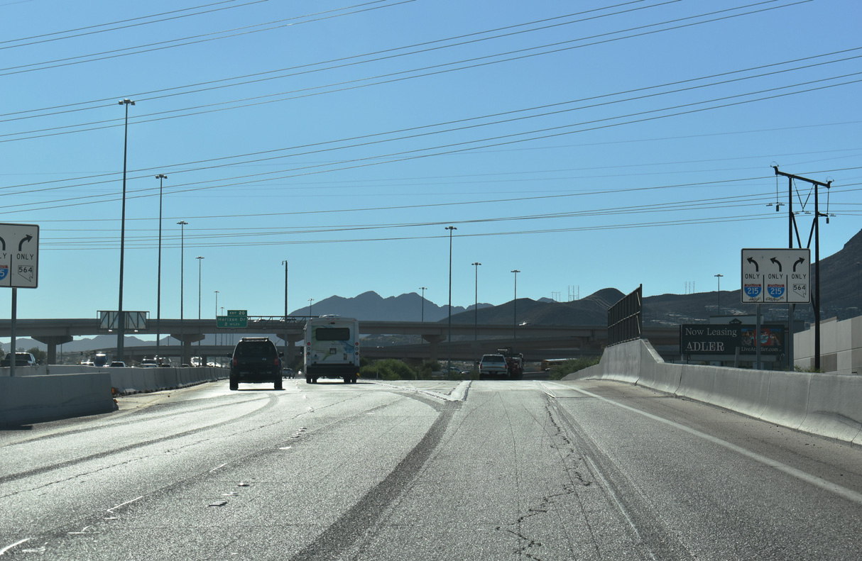 Passing through the Spaghetti Bowl interchange with I-15/U.S. 93 on I-11/U.S. 95 southbound.