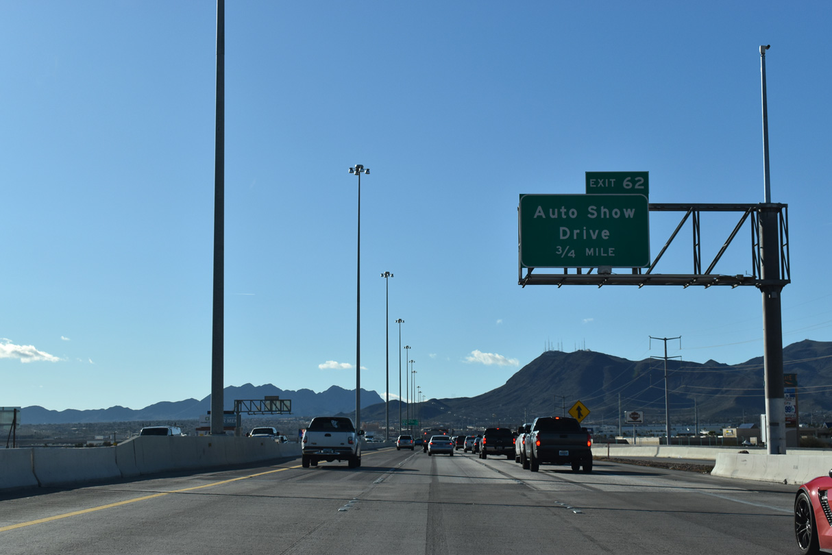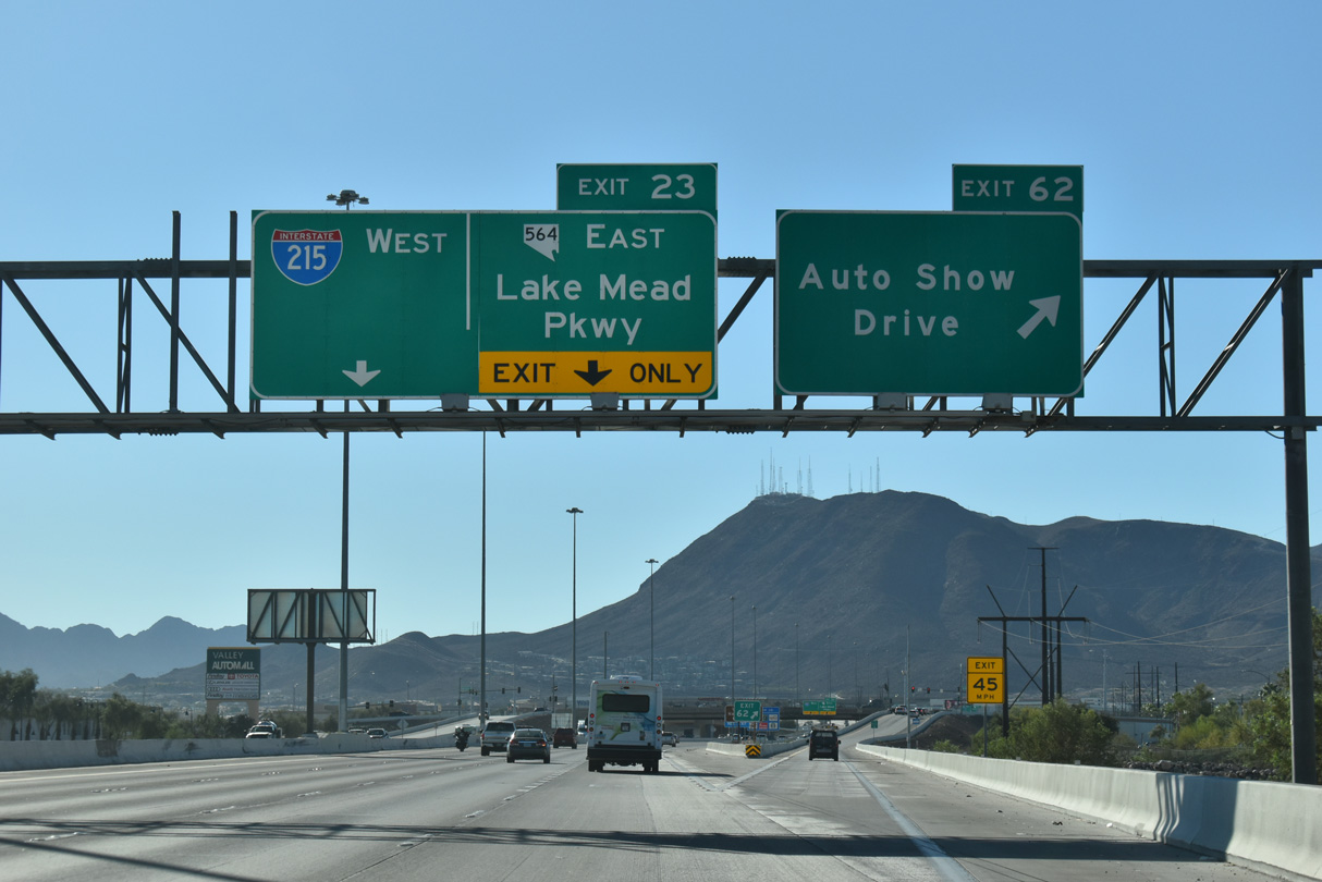 Exit 62 leaves I-11 south for Auto Show Drive just ahead of Exit 23 to both SR 564 (Lake Mead Parkway) east to Henderson and Lake Las Vegas and Interstate 215 west to Green Valley and Paradise.