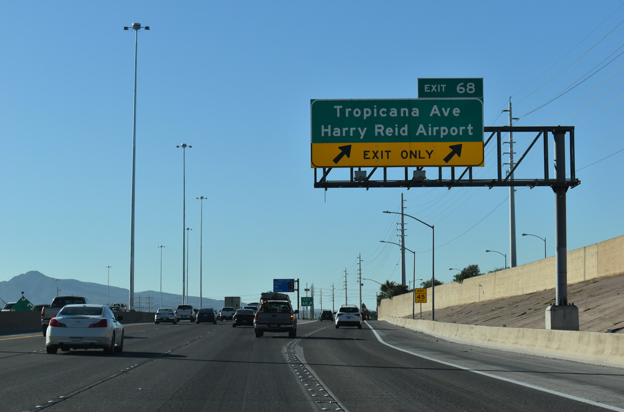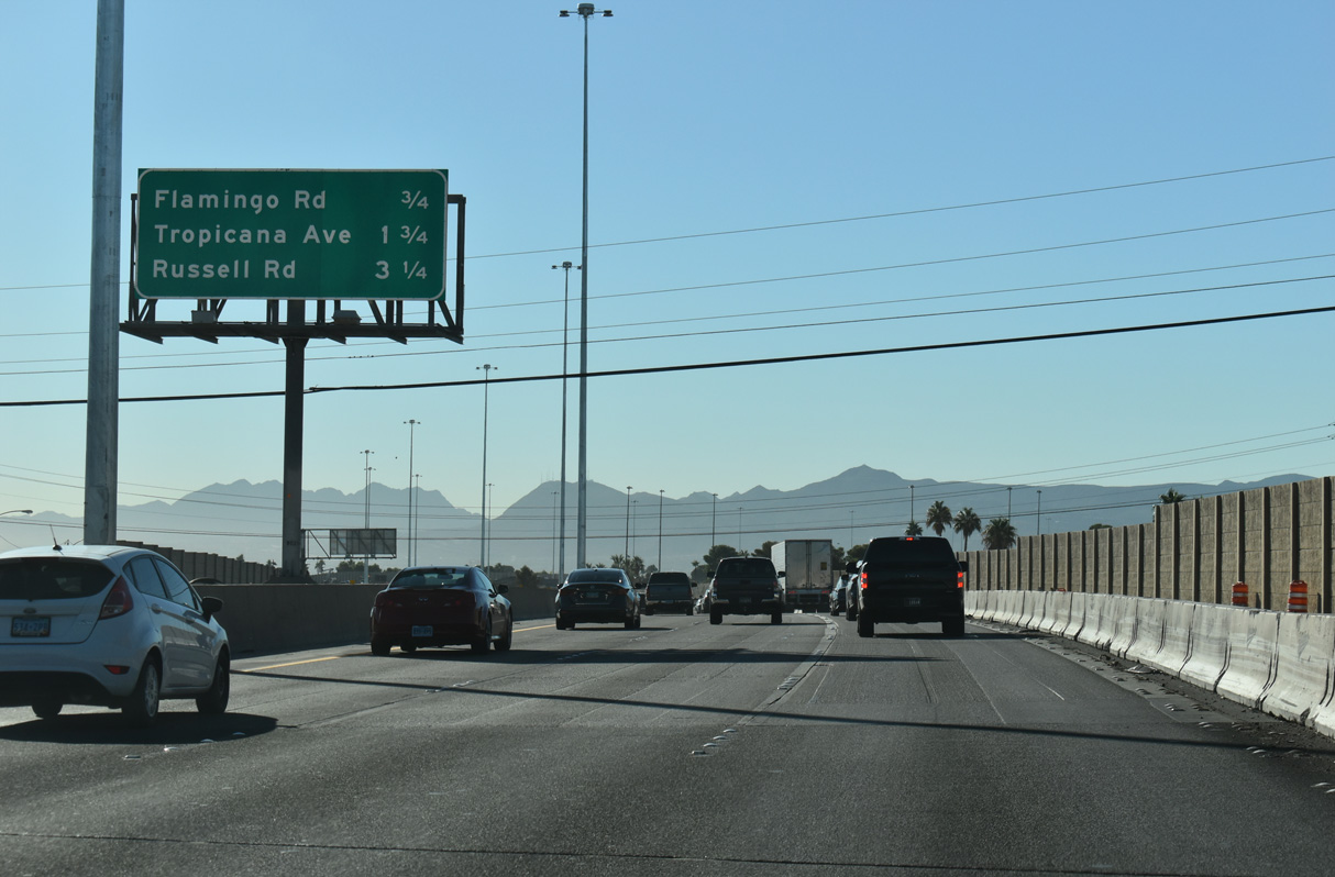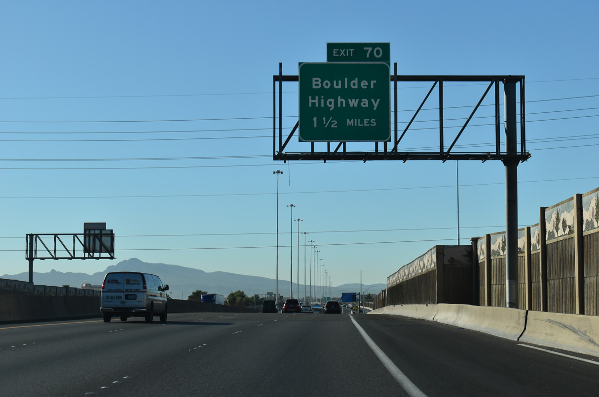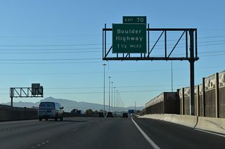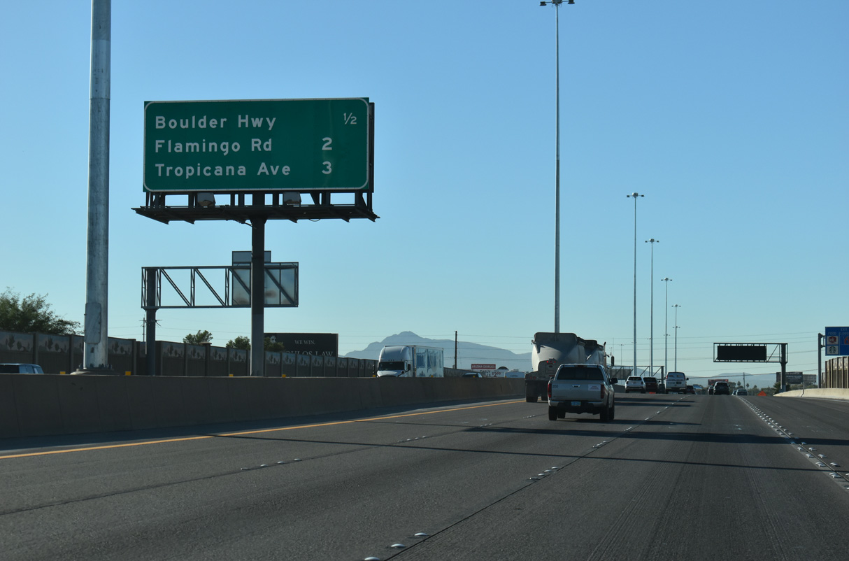 Flamingo Road joins the freeway at Exit 69 with Boulder Highway (SR 582) to the east and the center of the Las Vegas Strip to the west.