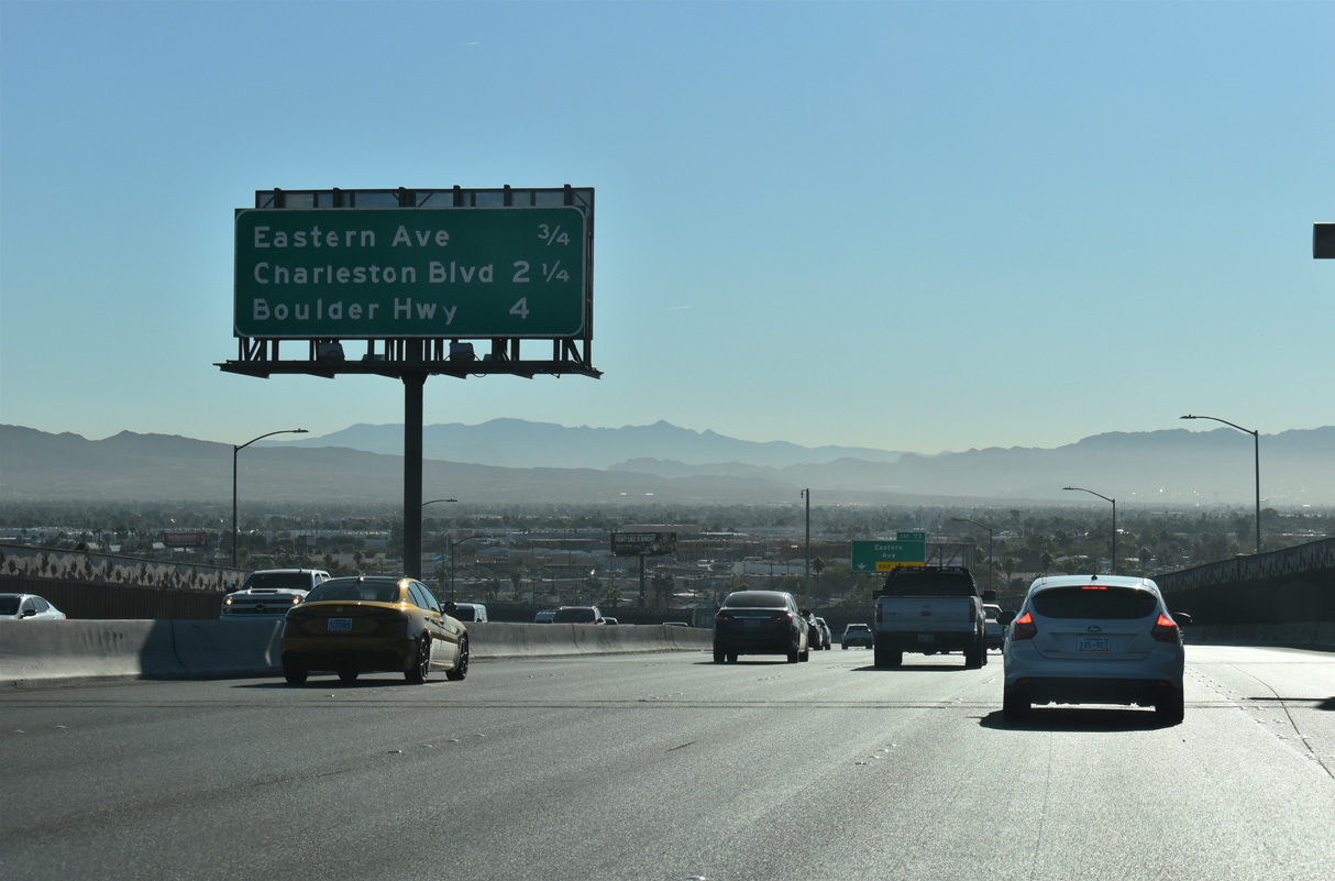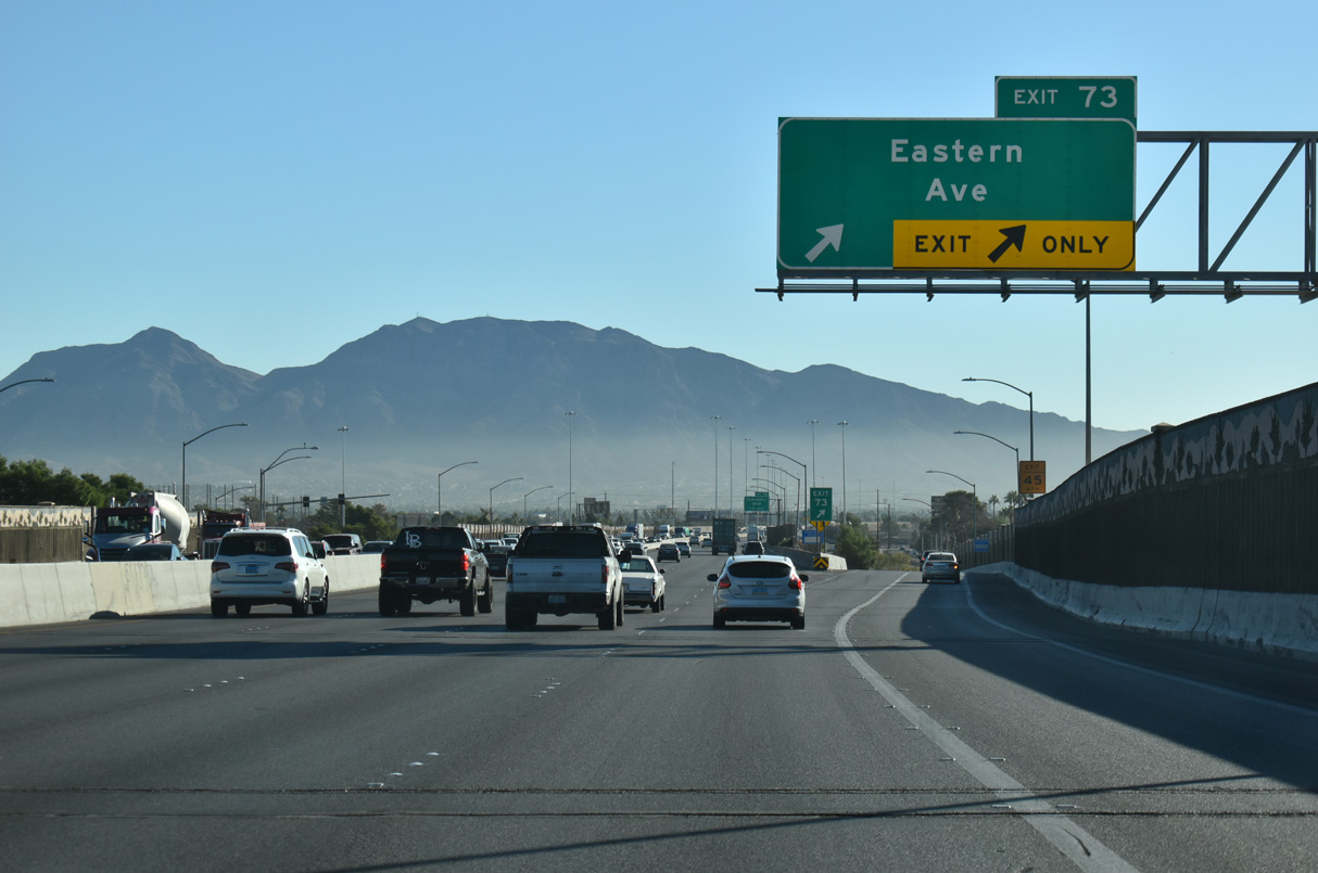 I-11/U.S. 93-95 advance east from Downtown Las Vegas 1.25 miles to Exit 73 for Eastern Avenue.