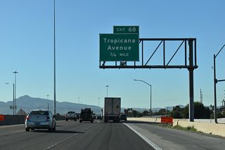 Exits for Flamingo Road in 2.5 miles and Tropicana Avenue in three miles miles both join the Oran K. Gragson freeway with the Las Vegas Strip.