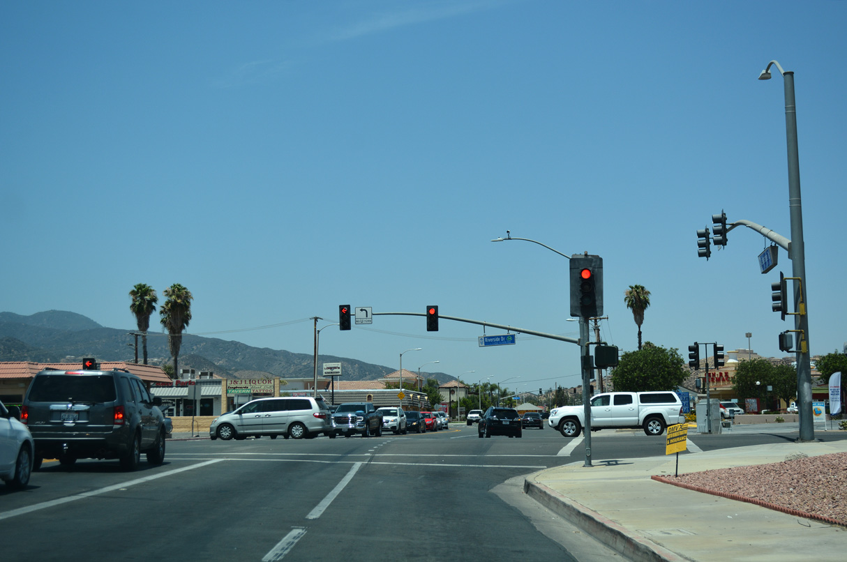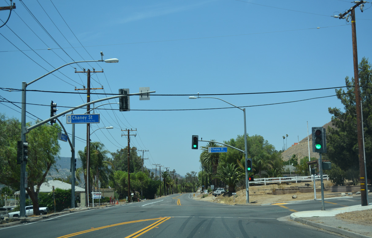 Leaving the Lake Elsinore city center, Business Loop I-15 shifts from South Main Street to Short Street by City Park and Library Street.
