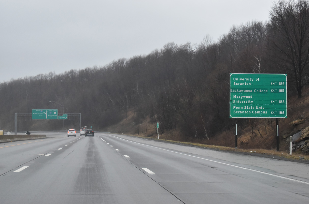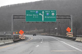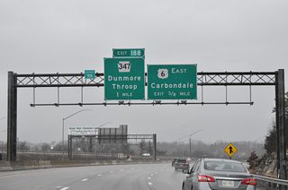 I-84/380 converge with the north end of PA 435 (Drinker Turnpike), the former alignment of U.S. 611, at a wye interchange in Dunmore.