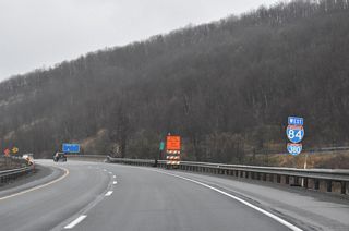 I-84/380 combine north at Roaring Brook Township across the Moosic Mountains.