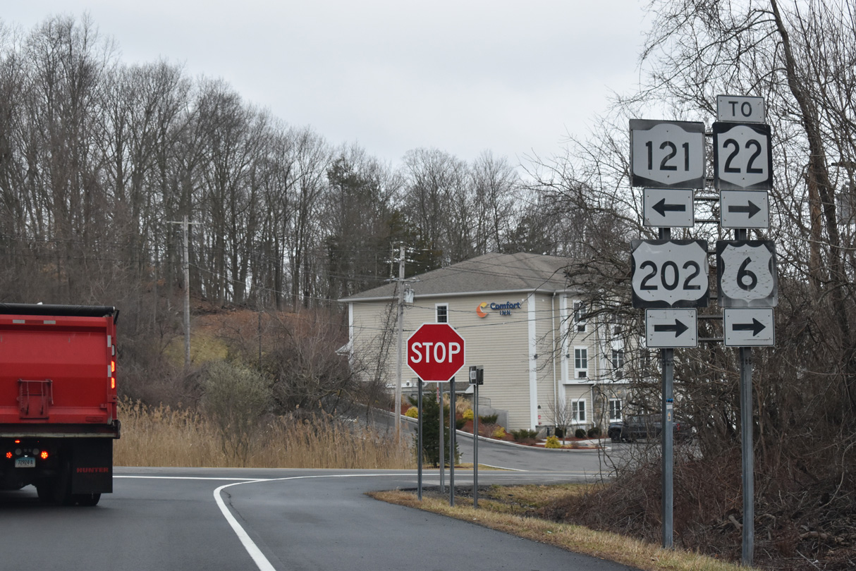 NY 121 meets I-84 at a half diamond interchange (Exit 69) just south of U.S. 6/202 and East Branch Reservoir.