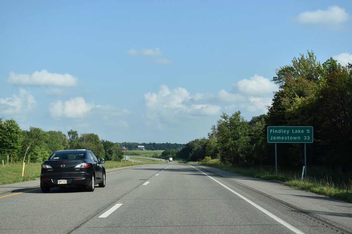 Findley Lake, New York represents the next exit along Interstate 86 eastbound.