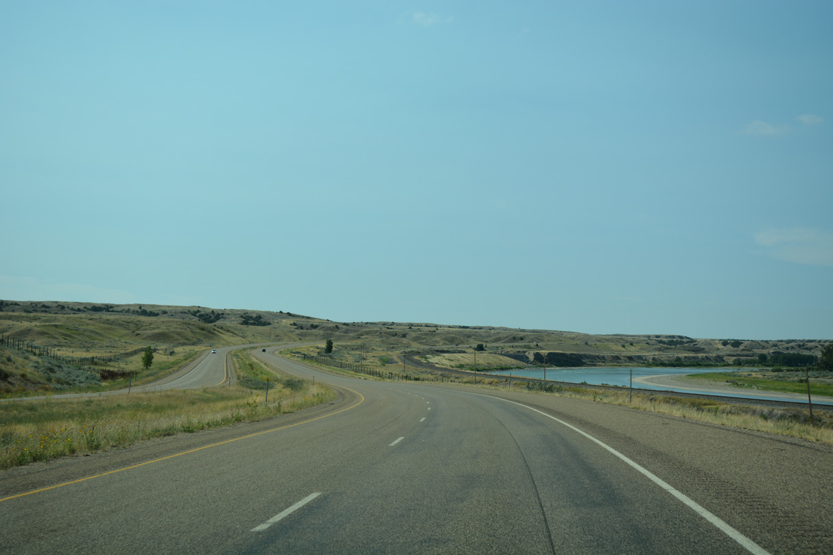 Interstate 94 straddles the bluffs rising east of the Yellowstone River on the ensuing stretch south.