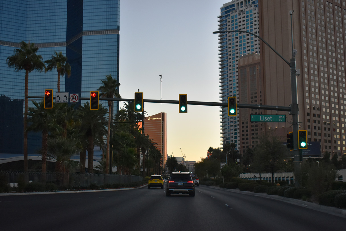 Traffic signals operate at Liset Way, the entrance to the Sahara Las Vegas hotel & casino. Previously named SLS Las Vegas, the casino was constructed at the site of the old Sahara Hotel. The Sahara closed on May 16, 2011.