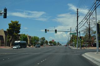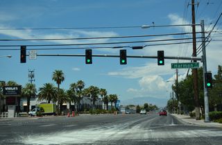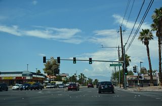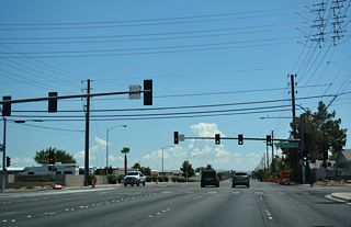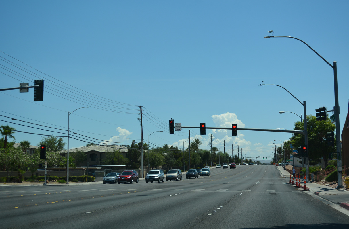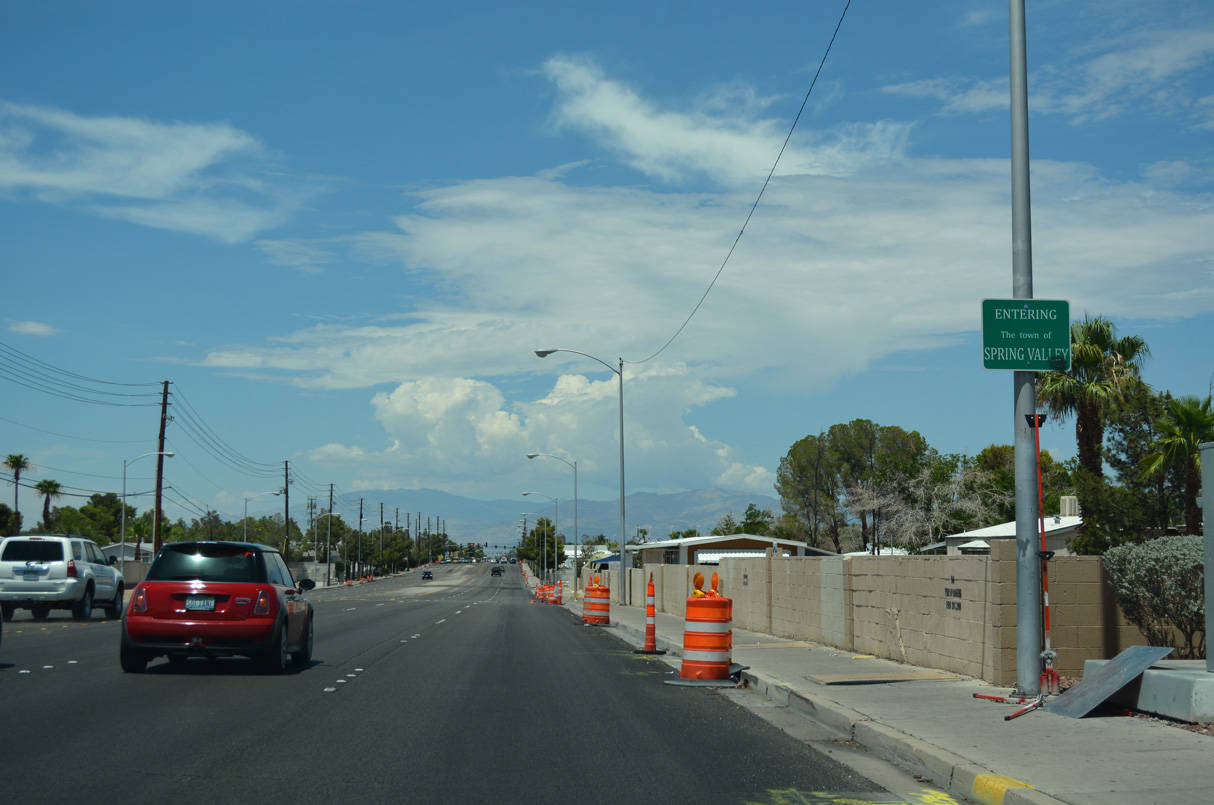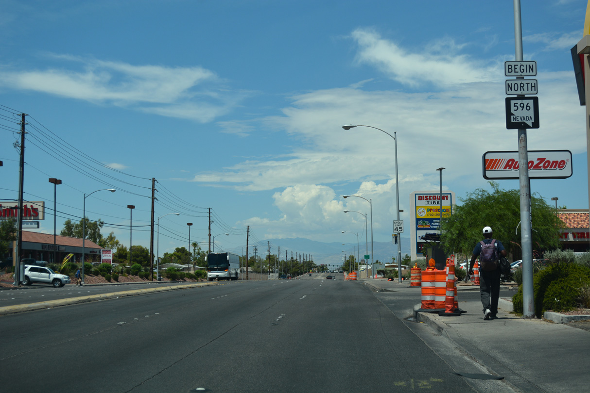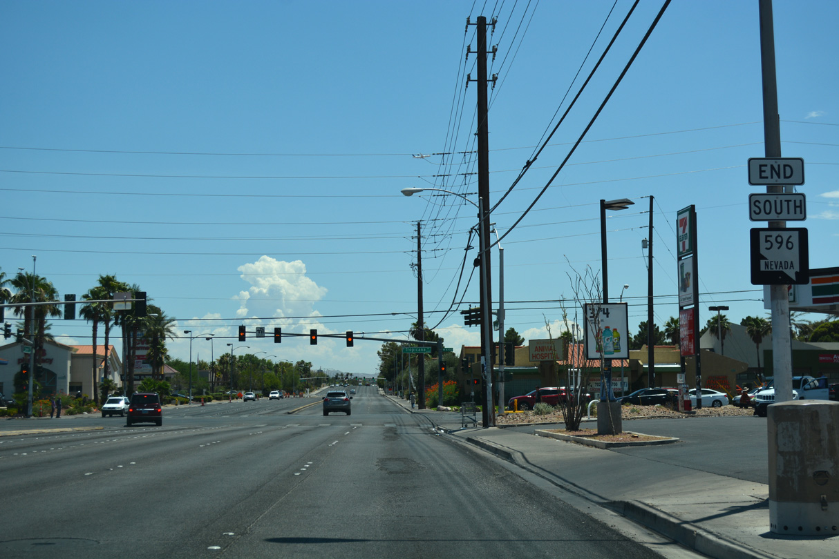 As of 2025, Nevada State Route 596 follows two sections of Jones Boulevard, an urban arterial extending south from northwest Las Vegas to Spring Valley. The southern leg stretches 2.167 miles from W Sahara Avenue to Aberdeen Lane / Clarice Avenue. Measuring 1.952 miles in length, the northern segment runs between Smoke Ranch Road and SR 599 (Rancho Drive).