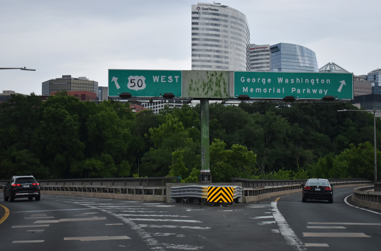 U.S. 50 combines with Interstate 66 west across the Theodore Roosevelt Memorial Bridge. I-66 joins the span south from the Potomac River Freeway.