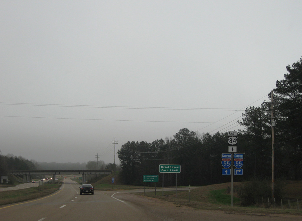 U.S. 84 enters the city of Brookhaven east at the diamond interchange (Exit 38) with Interstate 55.