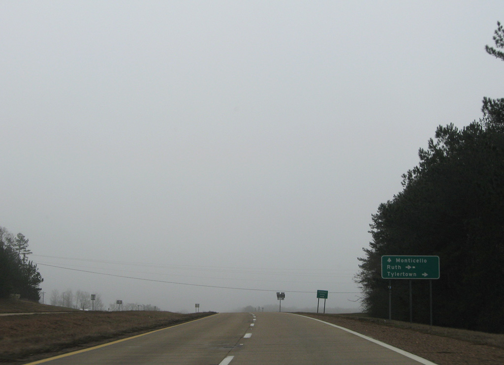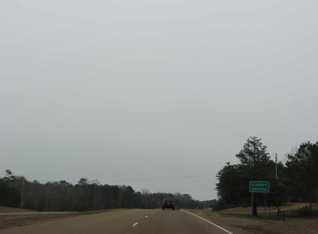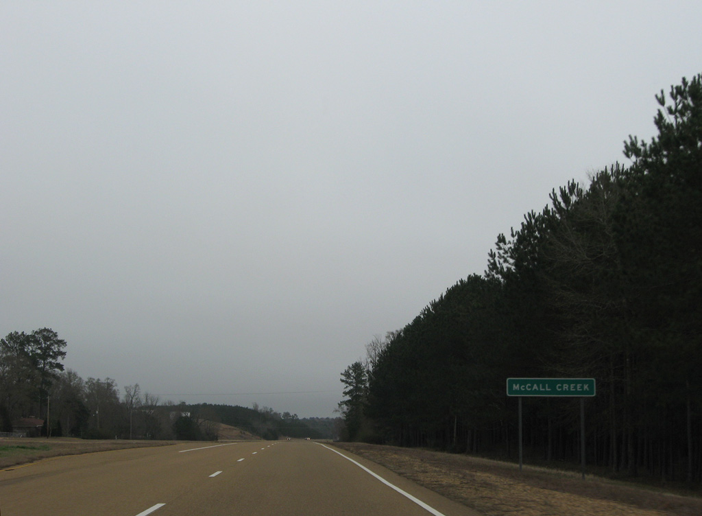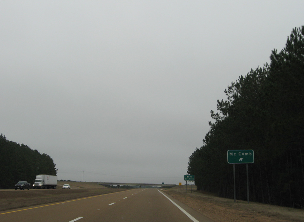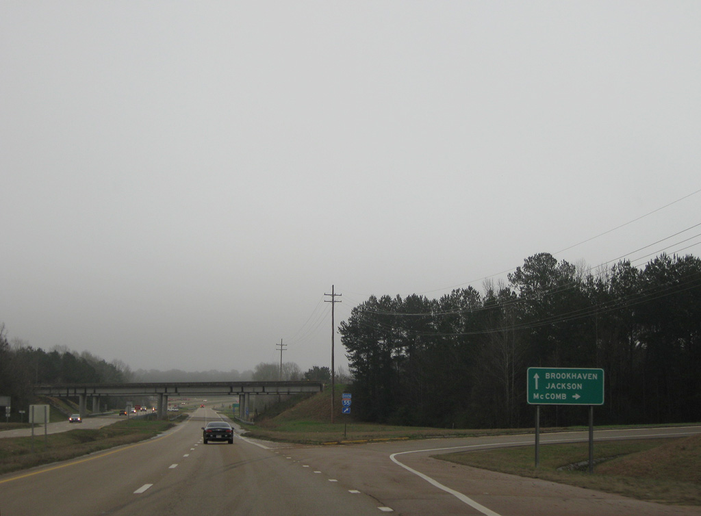 Bypassing the Lincoln County seat to the west, I-55 is a rural freeway between McComb and Hazlehurst.