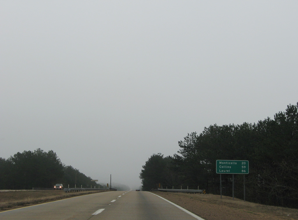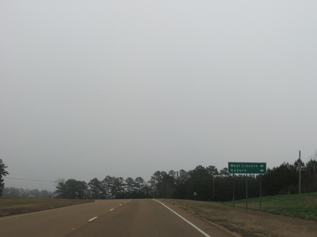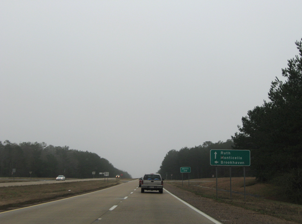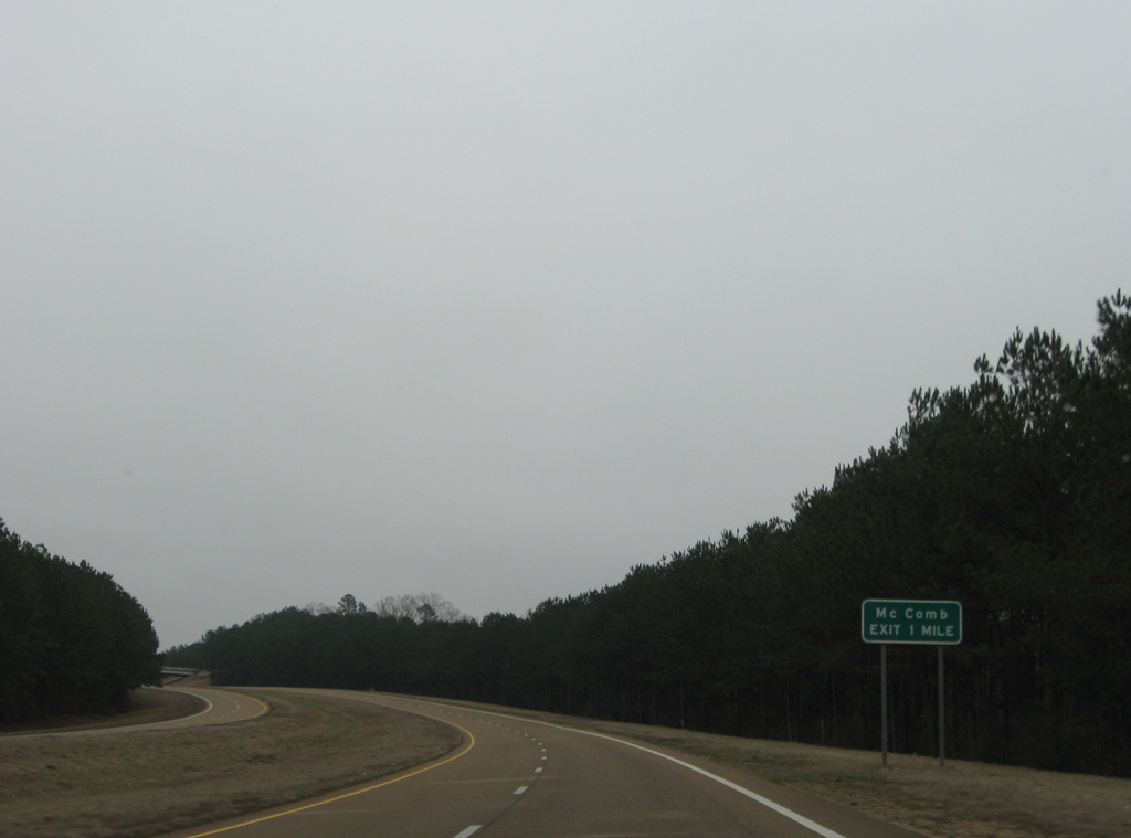 Bypassing the Lincoln County seat to the west, I-55 is a rural freeway between McComb and Hazlehurst.