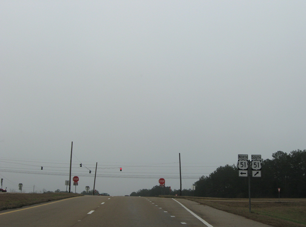 U.S. 51 heads 2.3 miles north to MS 184/558 at Brookway Boulevard west of Downtown Brookhaven. The unincorporated community of Bogue Chitto is 7.6 miles to the south along U.S. 51.