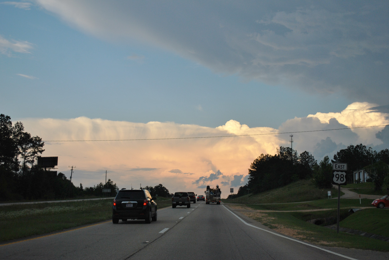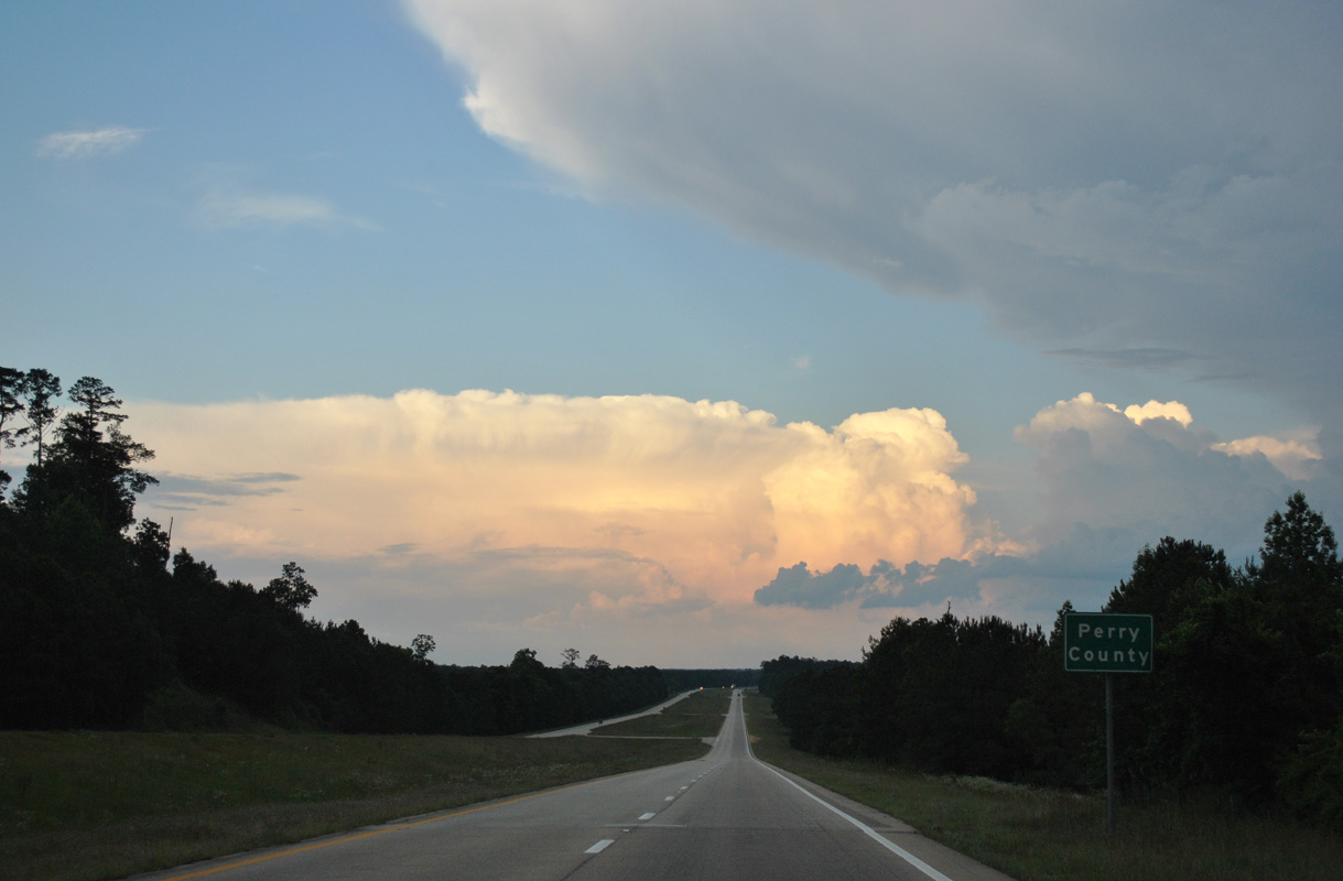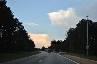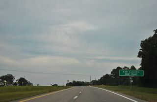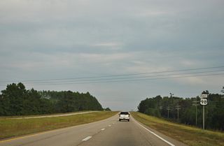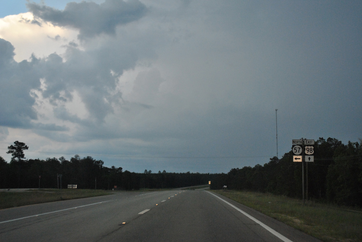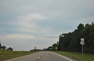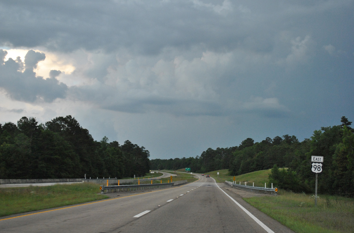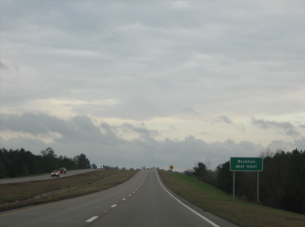 U.S. 98 east separates from Interstate 59 south at a rural trumpet interchange just outside the Hattiesburg city limits.
