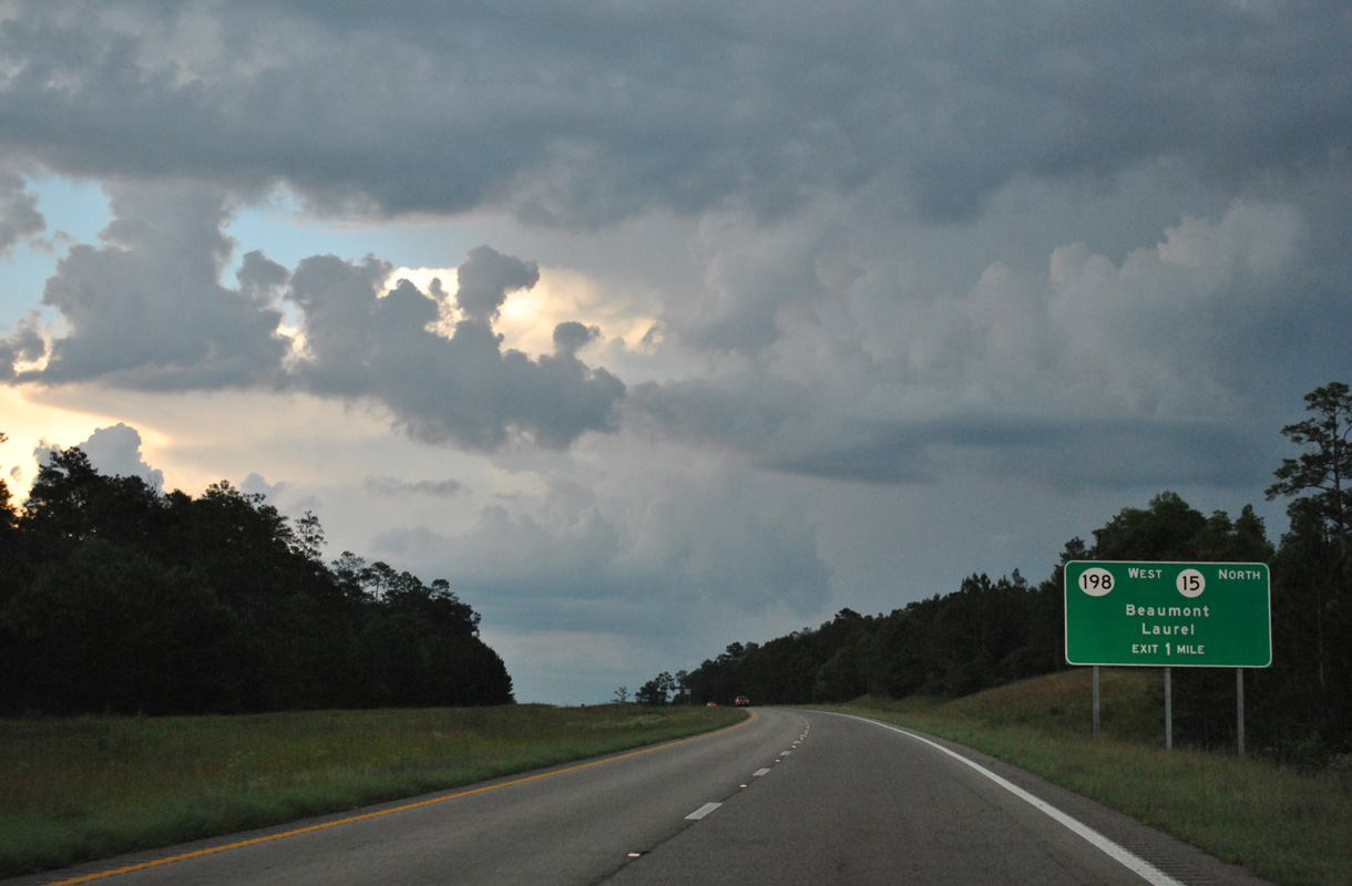MS 15 south combines with MS 198 east for 2.10 miles from Beaumont to a folded diamond interchange with U.S. 98.