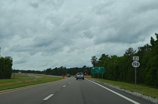 A six-ramp parclo interchange joins U.S. 98 with U.S. 49 on the south side of Hattiesburg in one mile.