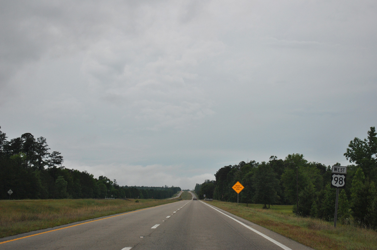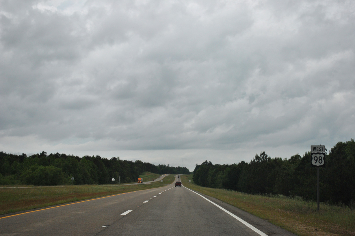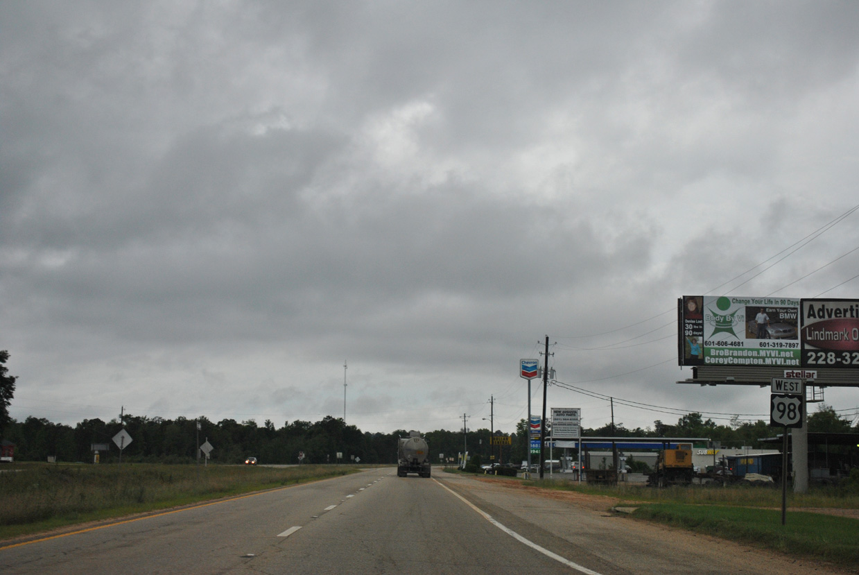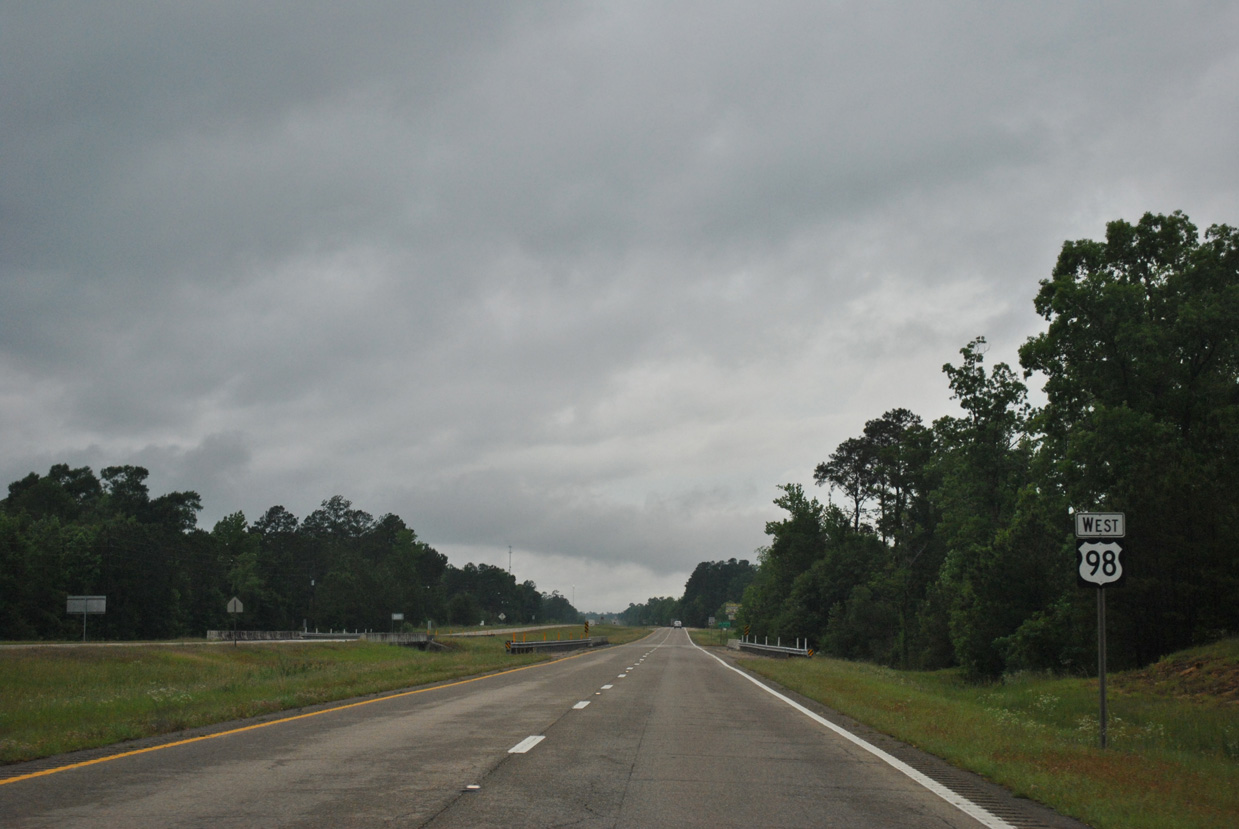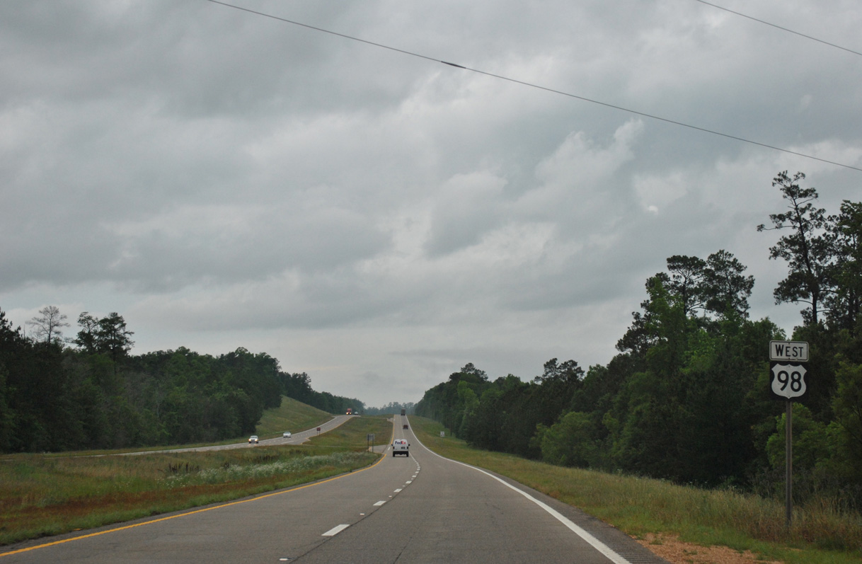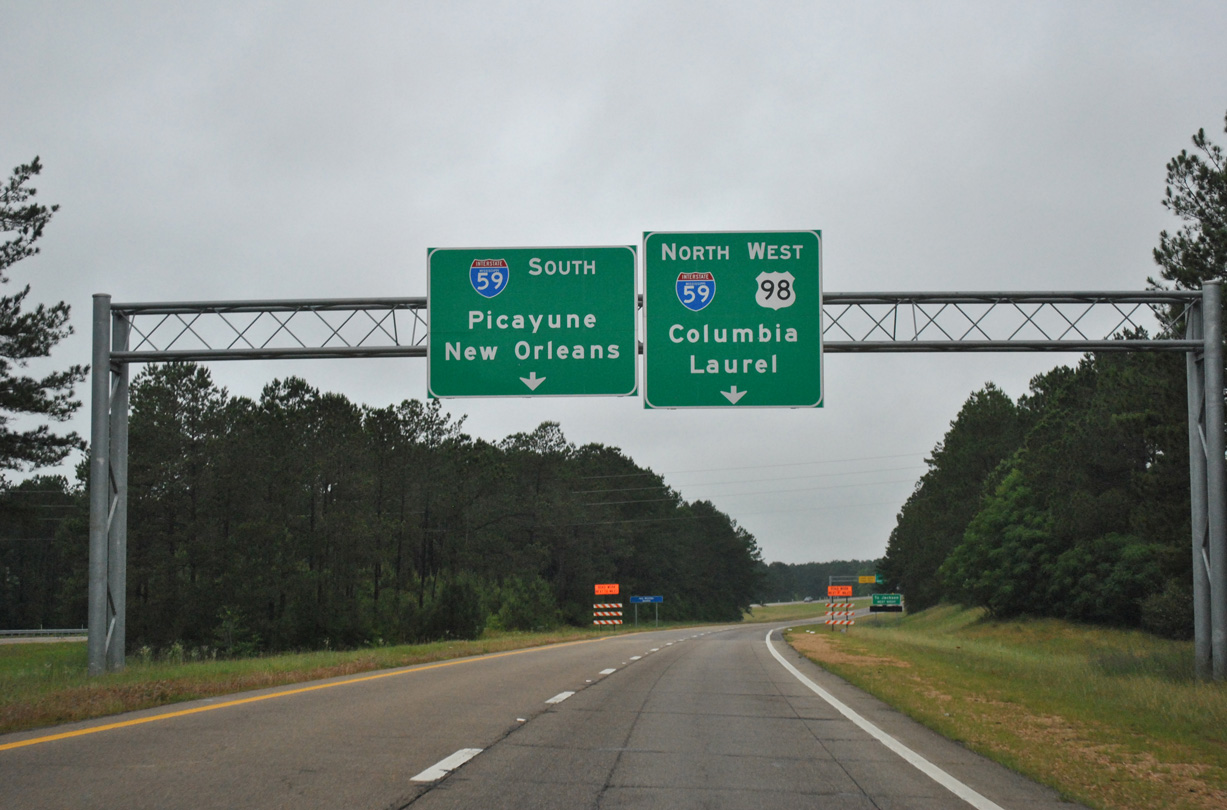 U.S. 98 originally combined with U.S. 49 northwest into Hattiesburg. The route was eventually realigned onto a freeway west to an overlap with Interstate 59.
