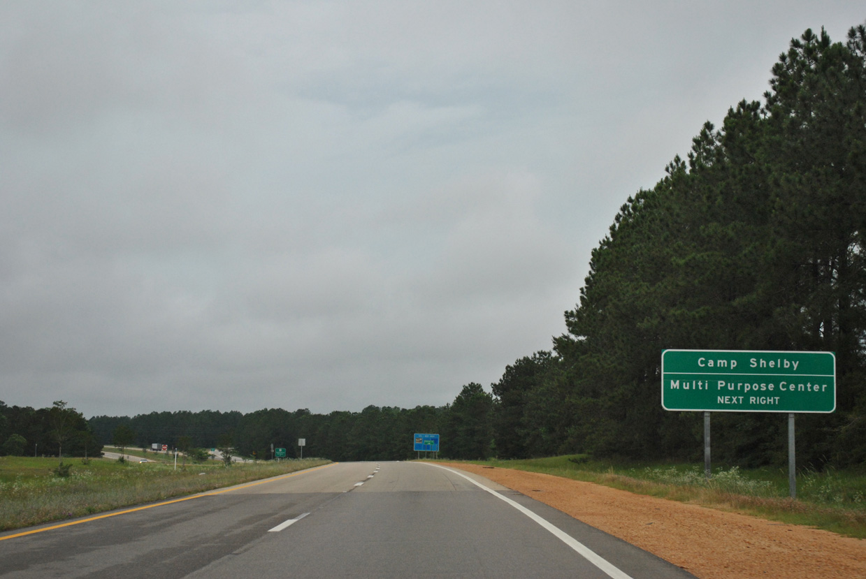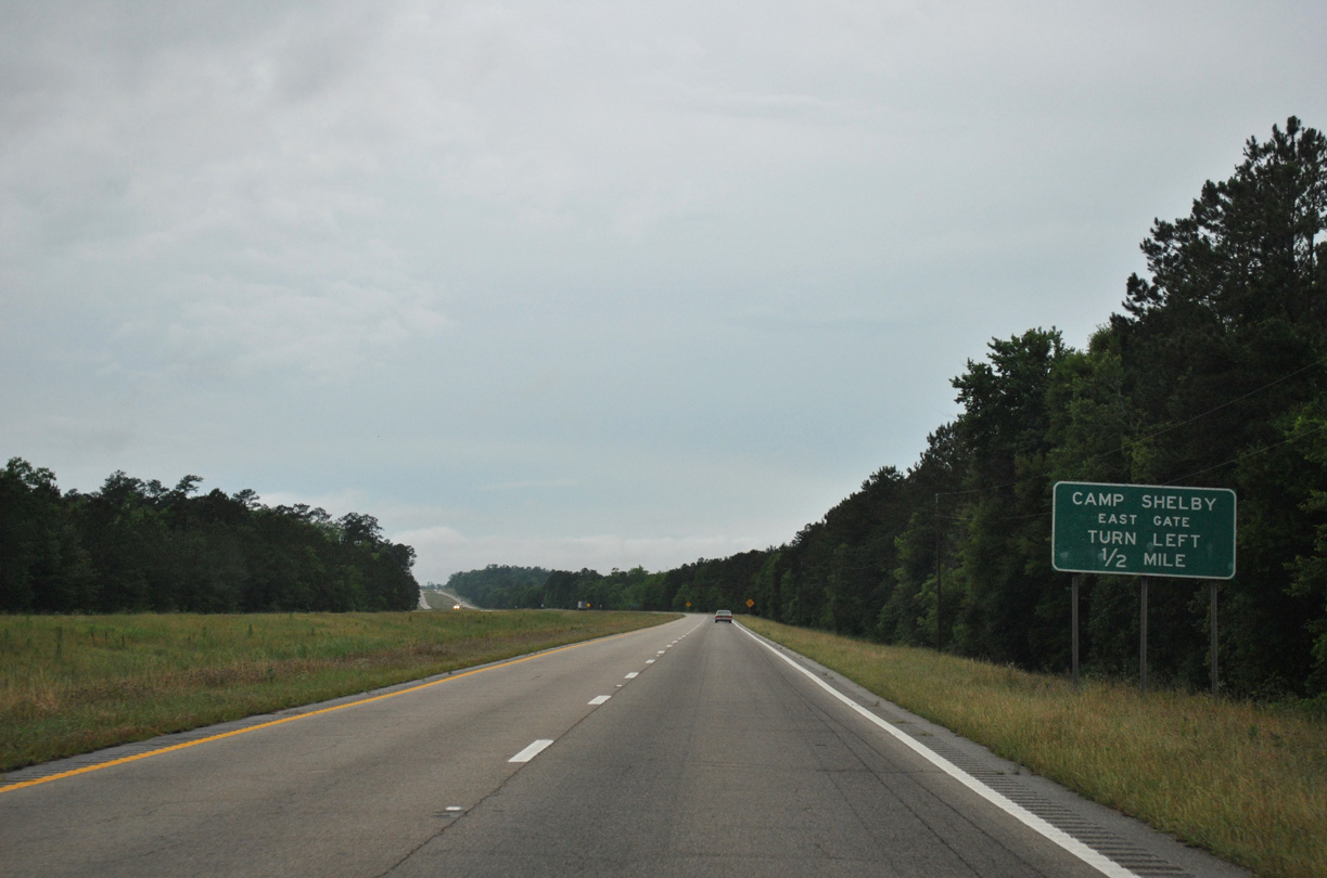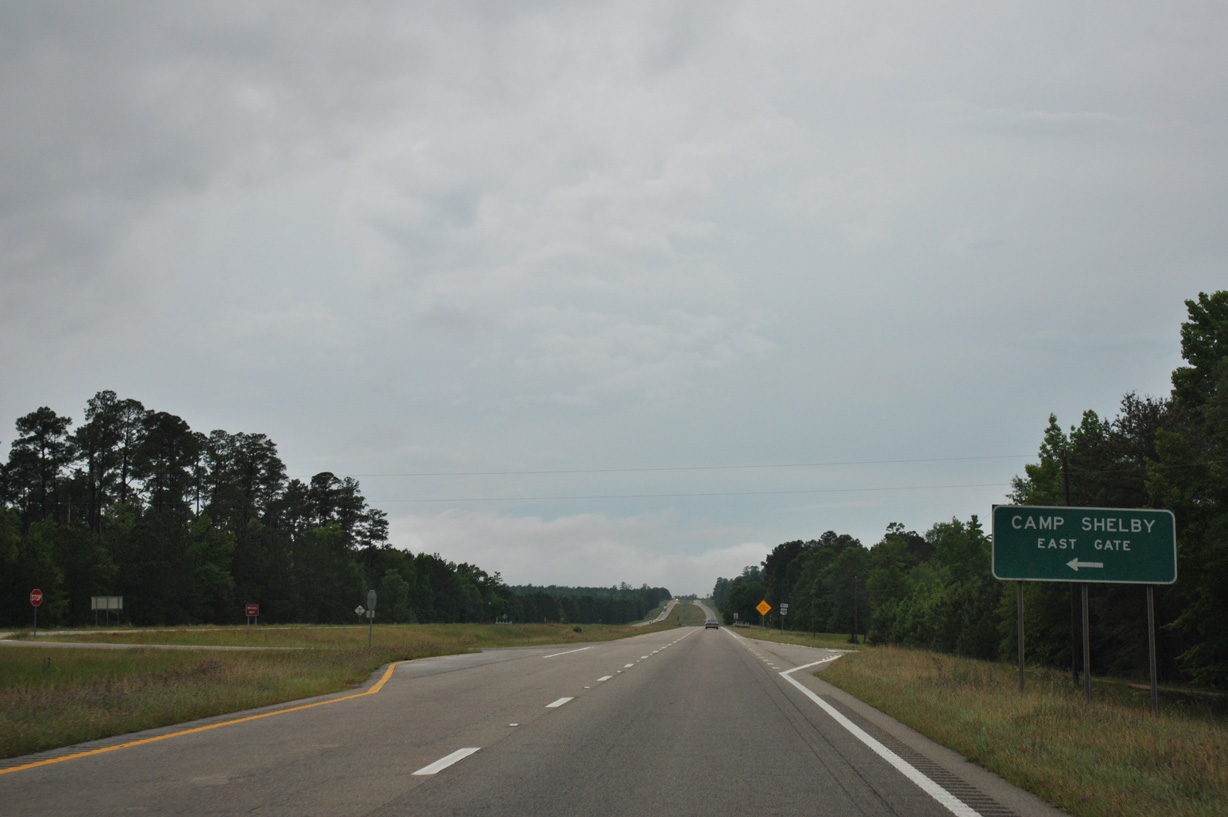 The Camp Shelby military reservation lies south of U.S. 98 midway between New Augusta and Hattiesburg.