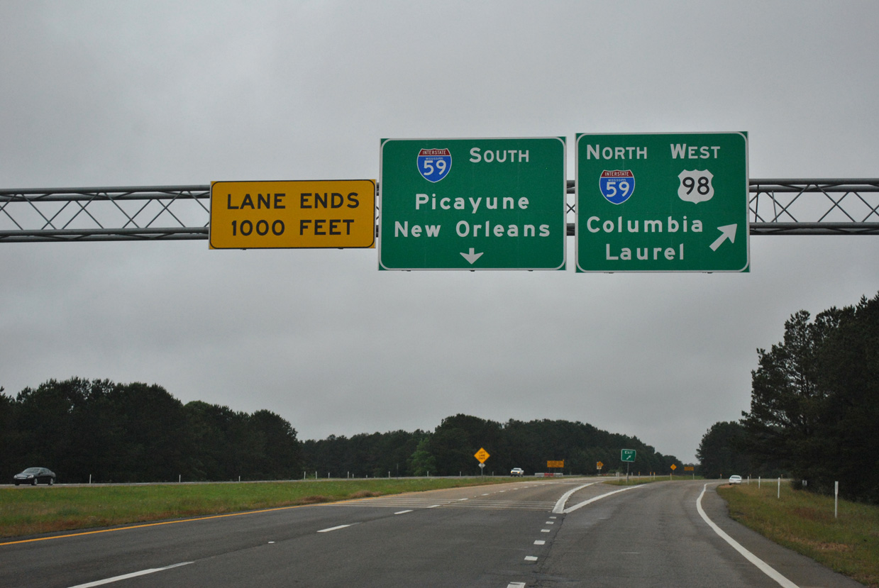 Interstate 59 in southeastern Mississippi joins the cities of Picayune, Hattiesburg, Laurel and Meridian.