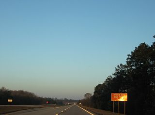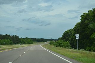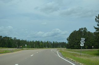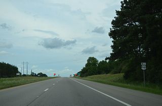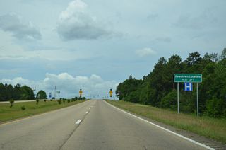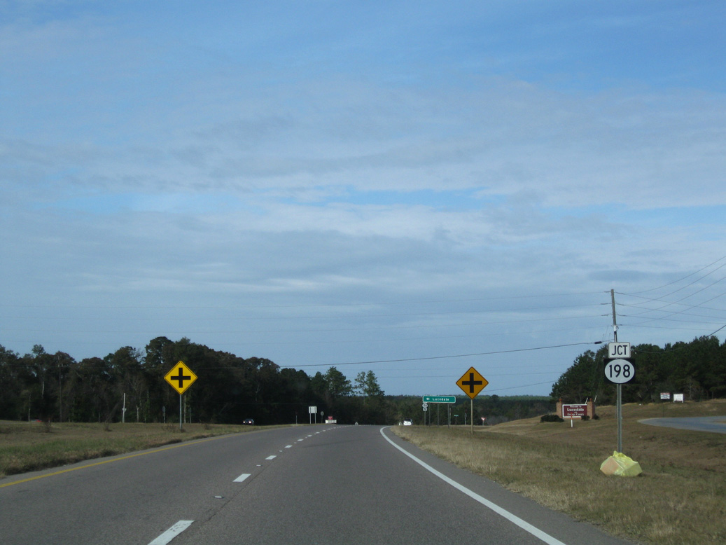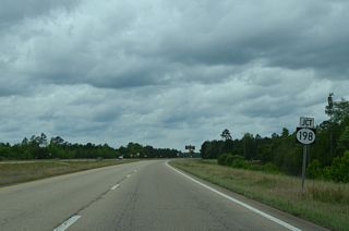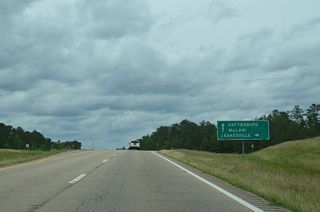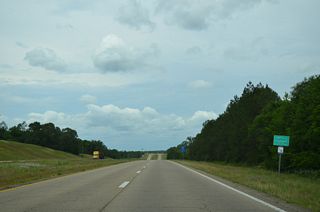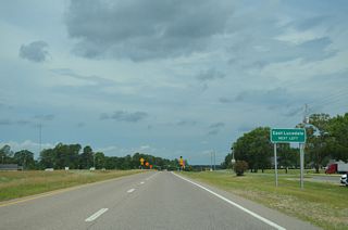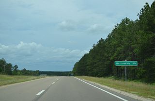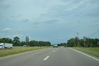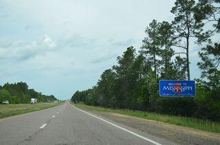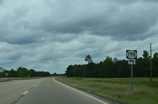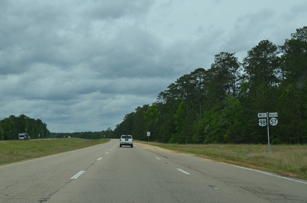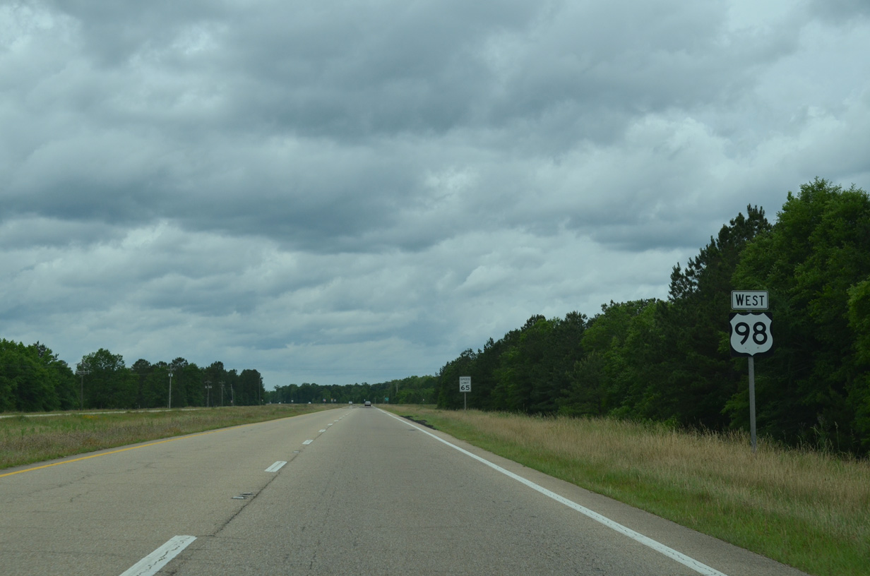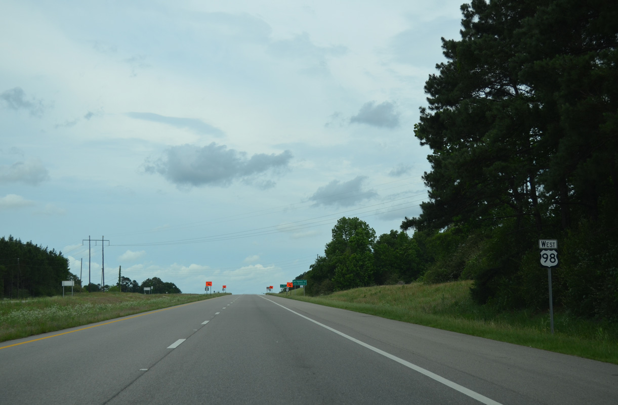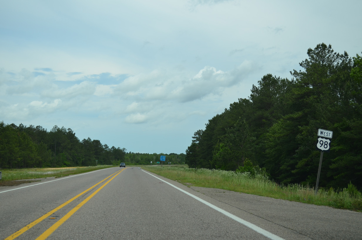U.S. 98 enters George County, Mississippi just ahead of Agricola-Latonia Road west to Latonia.