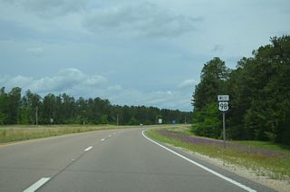 Ernest Pipkins Road intersects U.S. 98 just west of the diamond interchange with MS 63. The rural route links U.S. 98 with MS 198 (Main Street) to the south and Beaver Dam Road to the east.