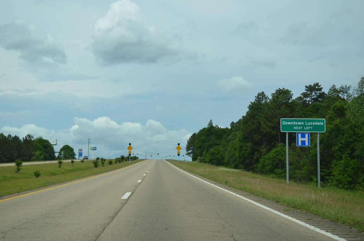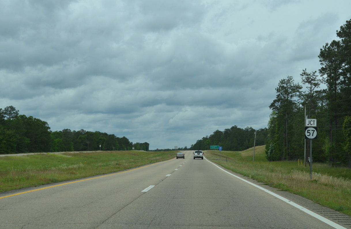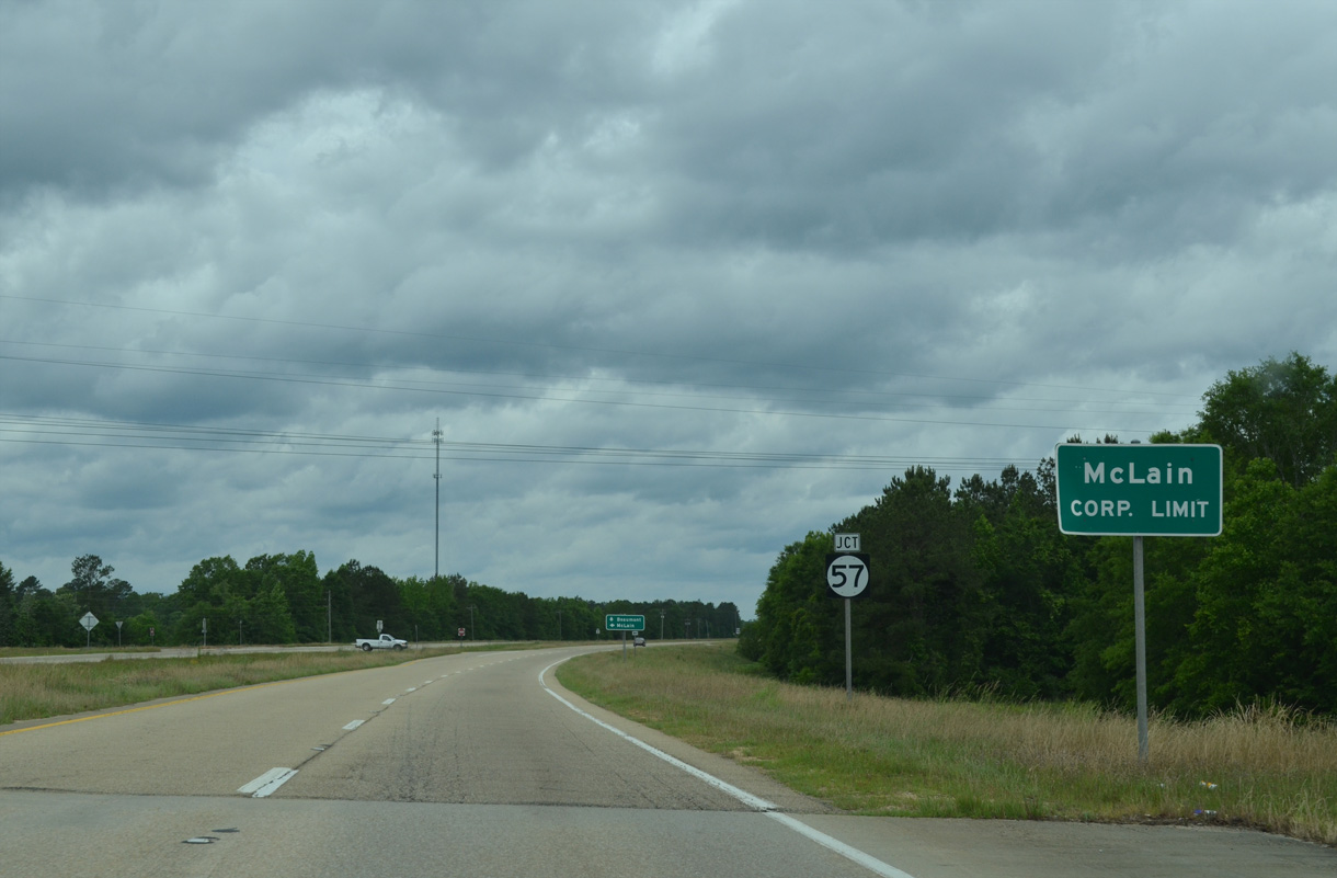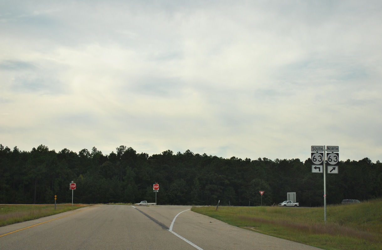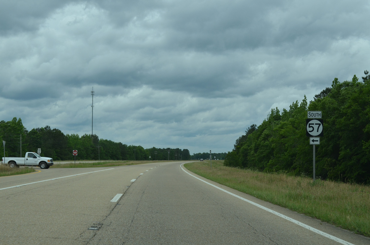 MS 63 north leads to Leakesville, where MS 57 overtakes the expressway en route to State Line.