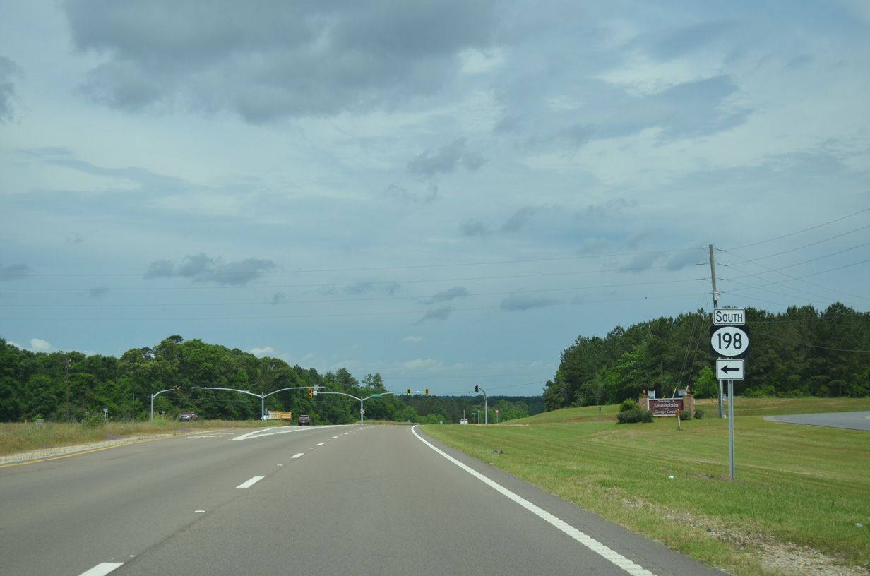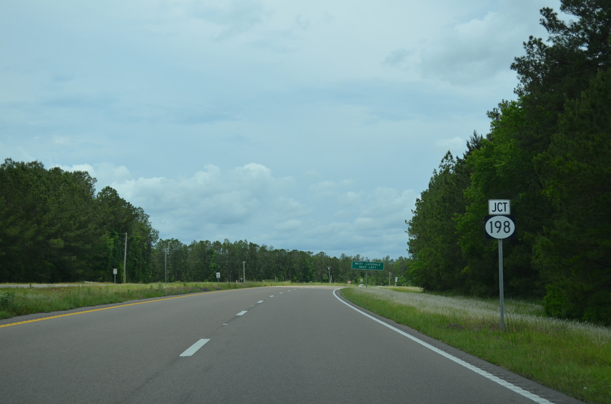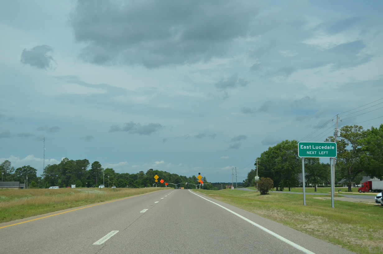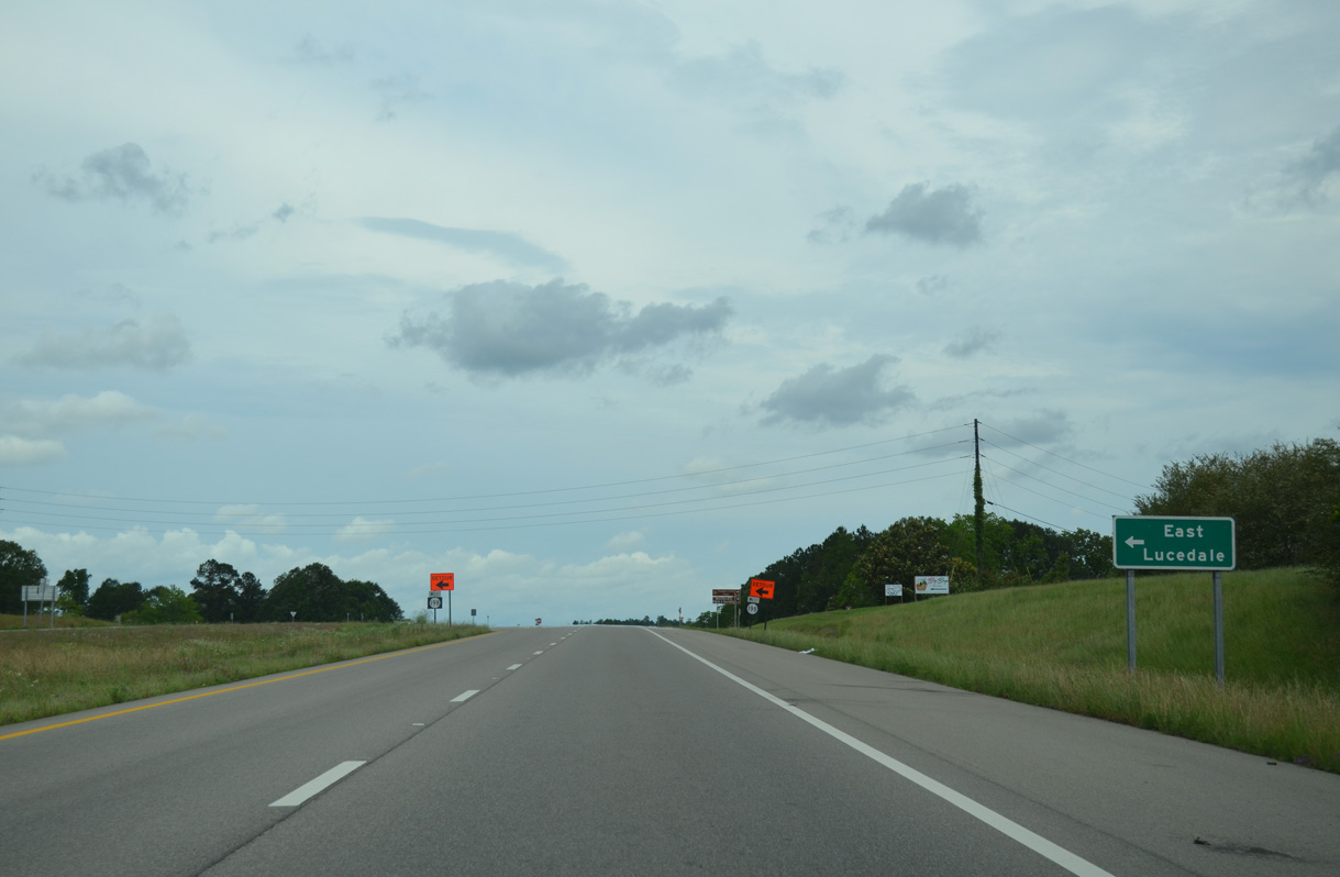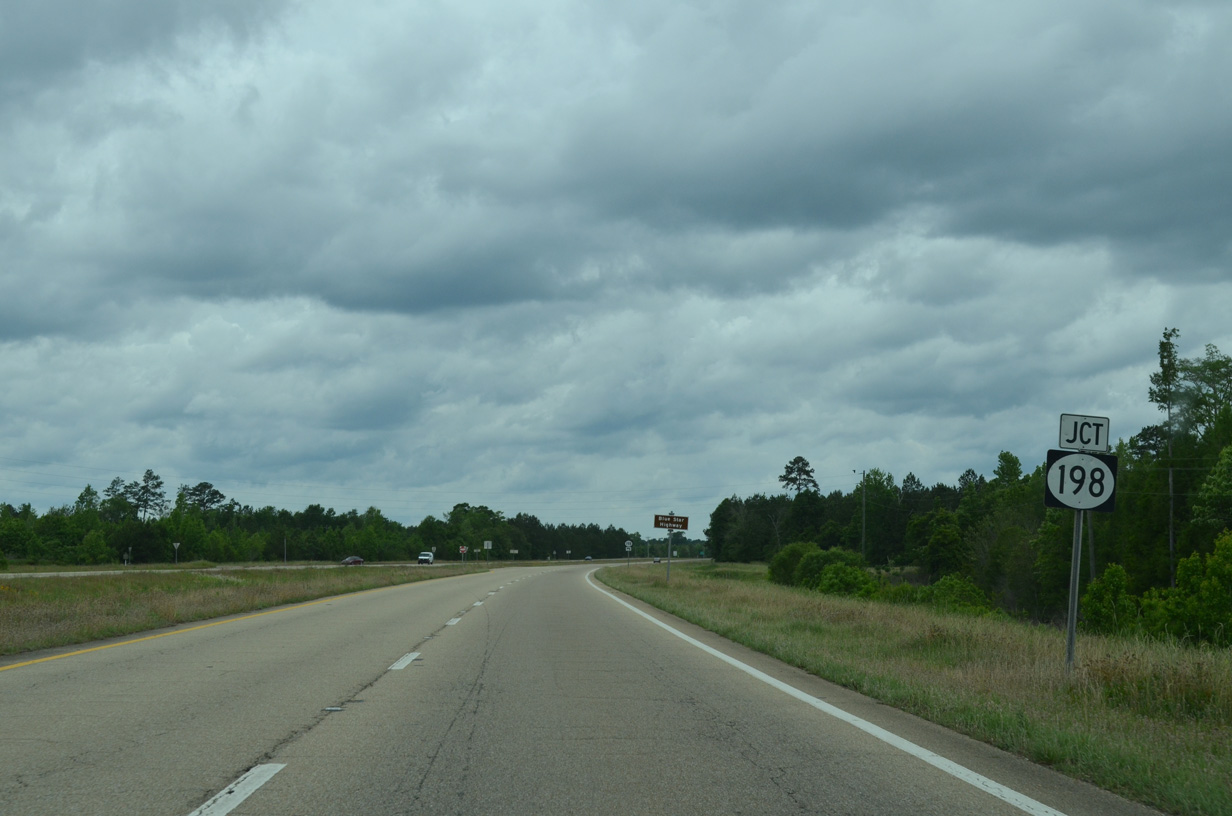 MS 63 north leads to Leakesville, where MS 57 overtakes the expressway en route to State Line.