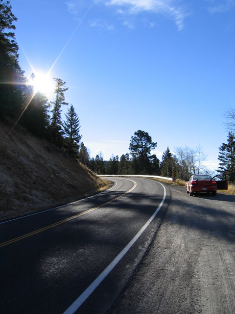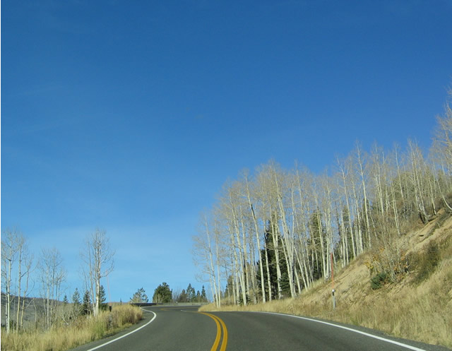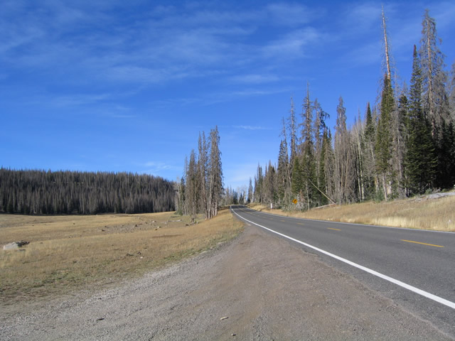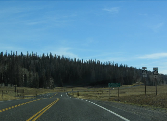 View of Utah 14 west as seen from the meadow on top of the Markagunt Plateau just east of the Utah 148 intersection.