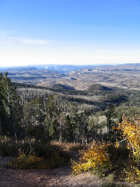 From this turnout on Utah 14 before reaching Midway Summit on Markagunt Plateau, Zion National Park, the Kolob Plateau and Canyons, and Black Mountain are visible, thus offering dramatic scenery.