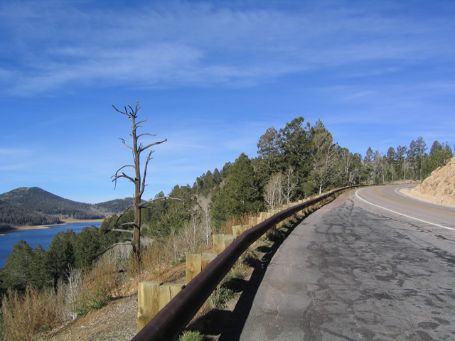 Navajo Lake, which feeds the North Fork of the Virgin River, is visible from this turnout on the south side of westbound Utah 14 near Duck Creek.