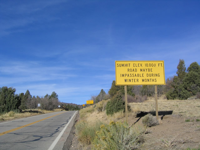 Eastbound Utah 14 at Utah 148. Utah 148 is closed in winter due to seasonal snowfall, thus making Cedar Breaks National Monument inaccessible at that time.