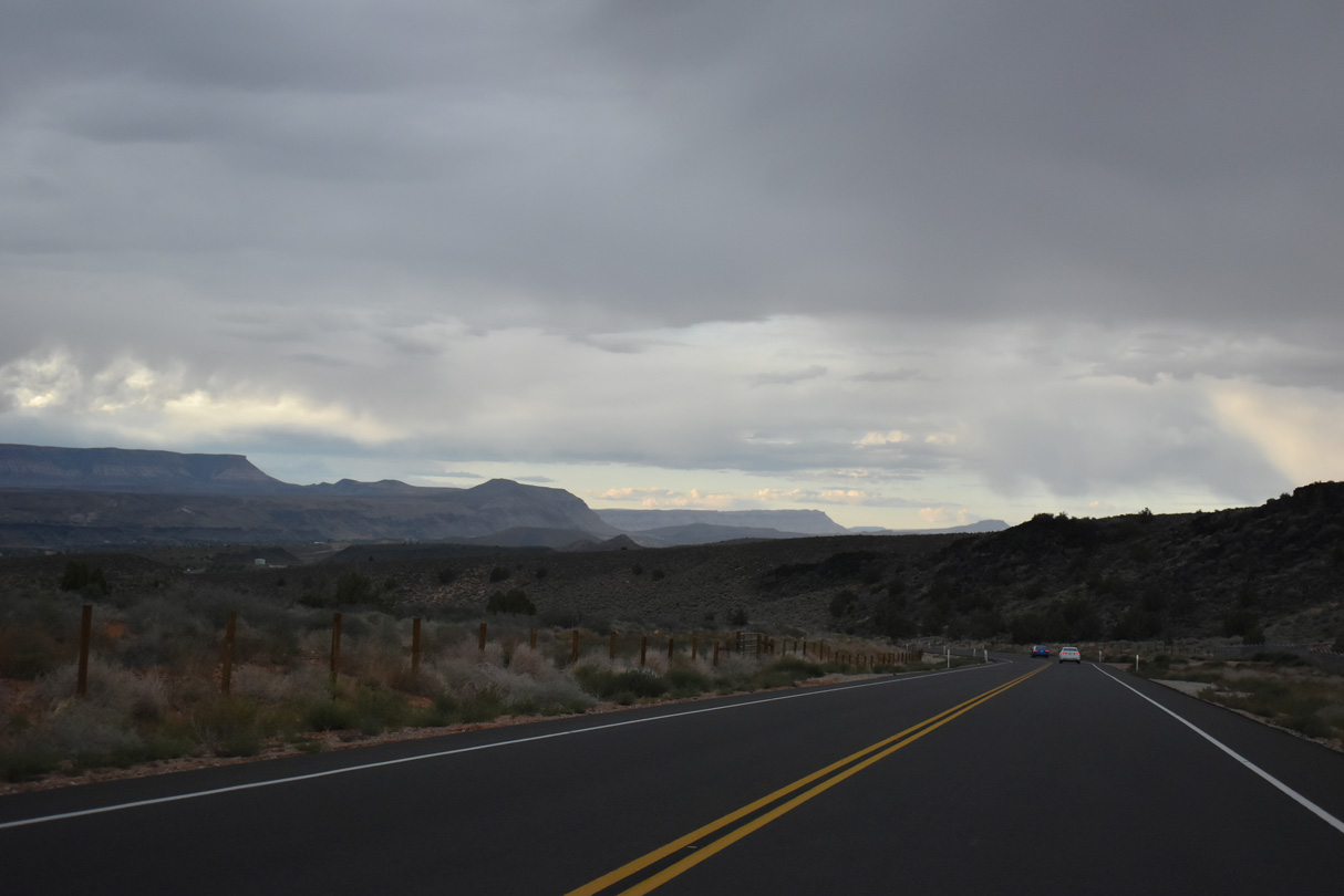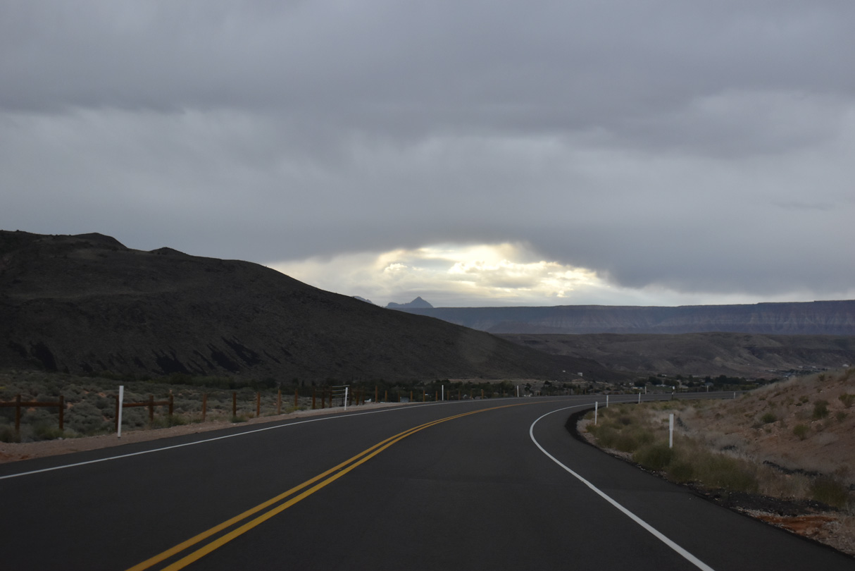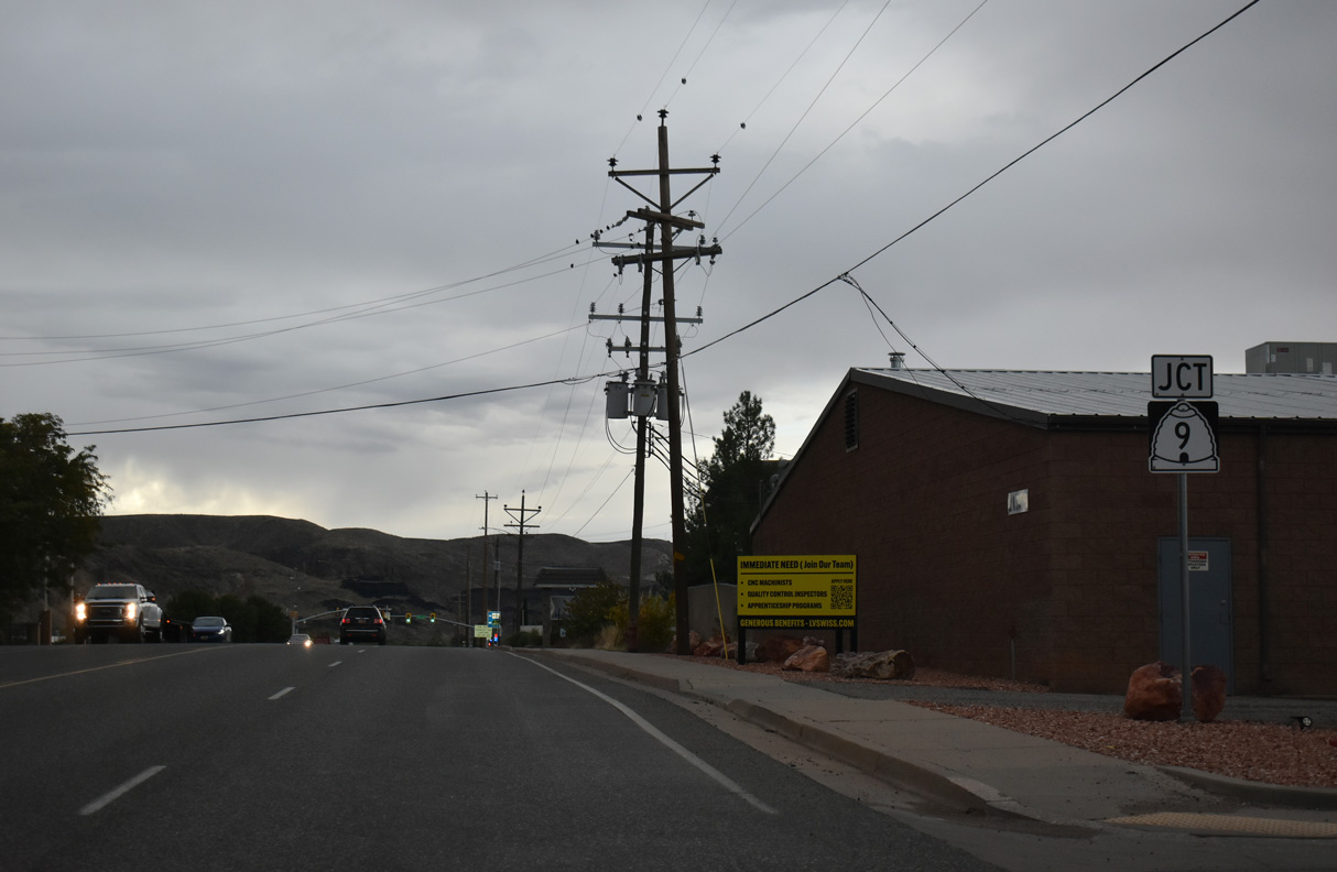 SR 17 south to SR 9 leads east to Zion National Park. SR 59 east from SR 9 in Hurricane links with Arizona State Route 389 to U.S. 89 south toward Grand Canyon National Park.