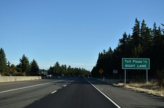 The toll plaza for cash transactions for the Tacoma Narrows Bridge is Exit 8. Exit 8 from SR 16 westbound serves 24th Street NW.
