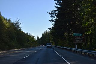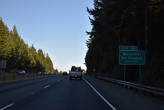 Shifting east to bypass Purdy, SR 16 eastbound enters Pierce County just beyond the gore point for Exit 18.