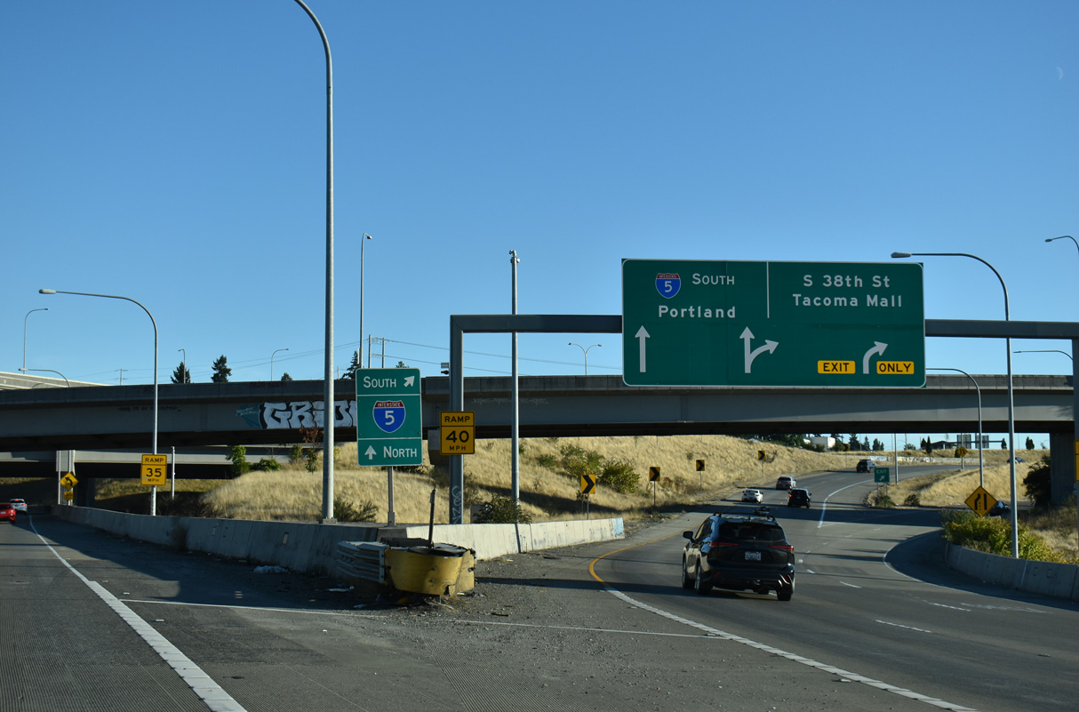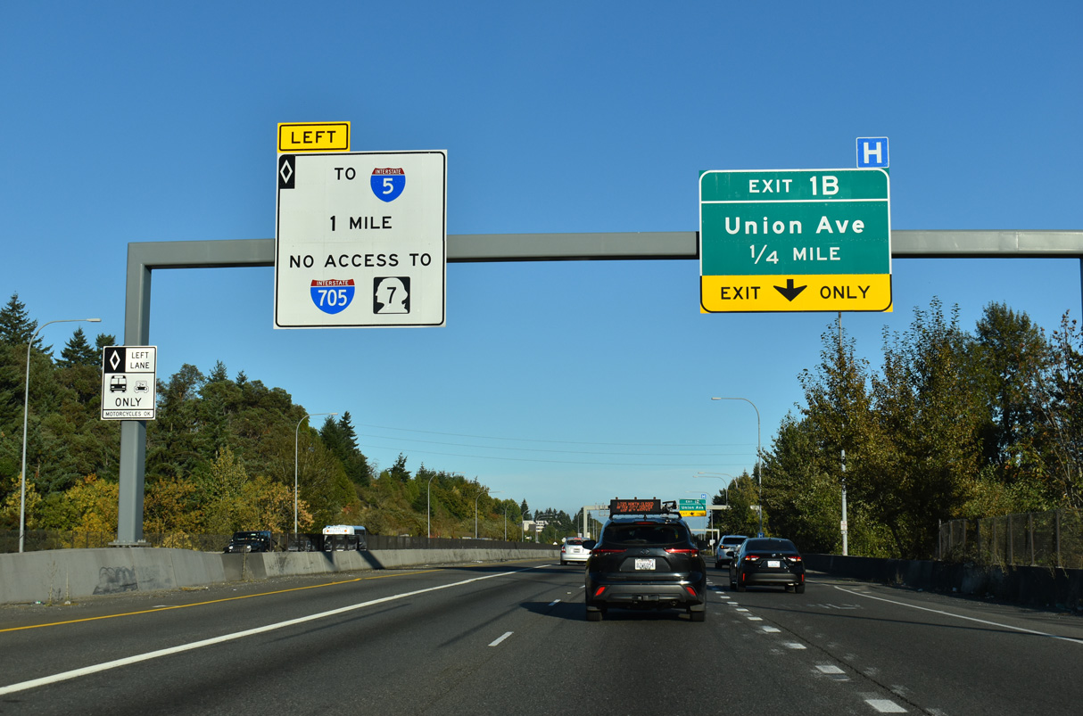 A diamond interchange at Exit 1 A replaced the directional ramps to Sprague Avenue as part of the West Nalley Valley interchange project. The design accommodated new westbound viaducts originating from Interstate 5.