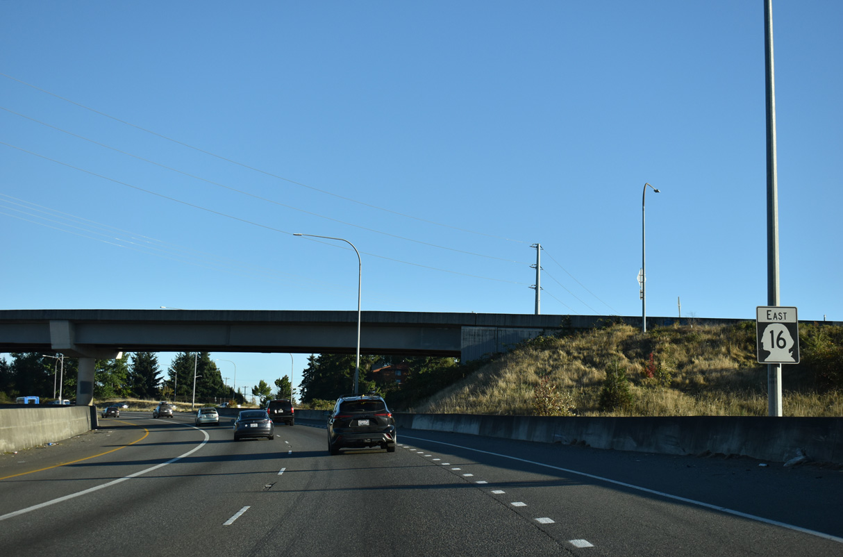 24th Street NW spans SR 16, 1.25 miles ahead of Exit 4 for Jackson Avenue to 6th Avenue in Tacoma.