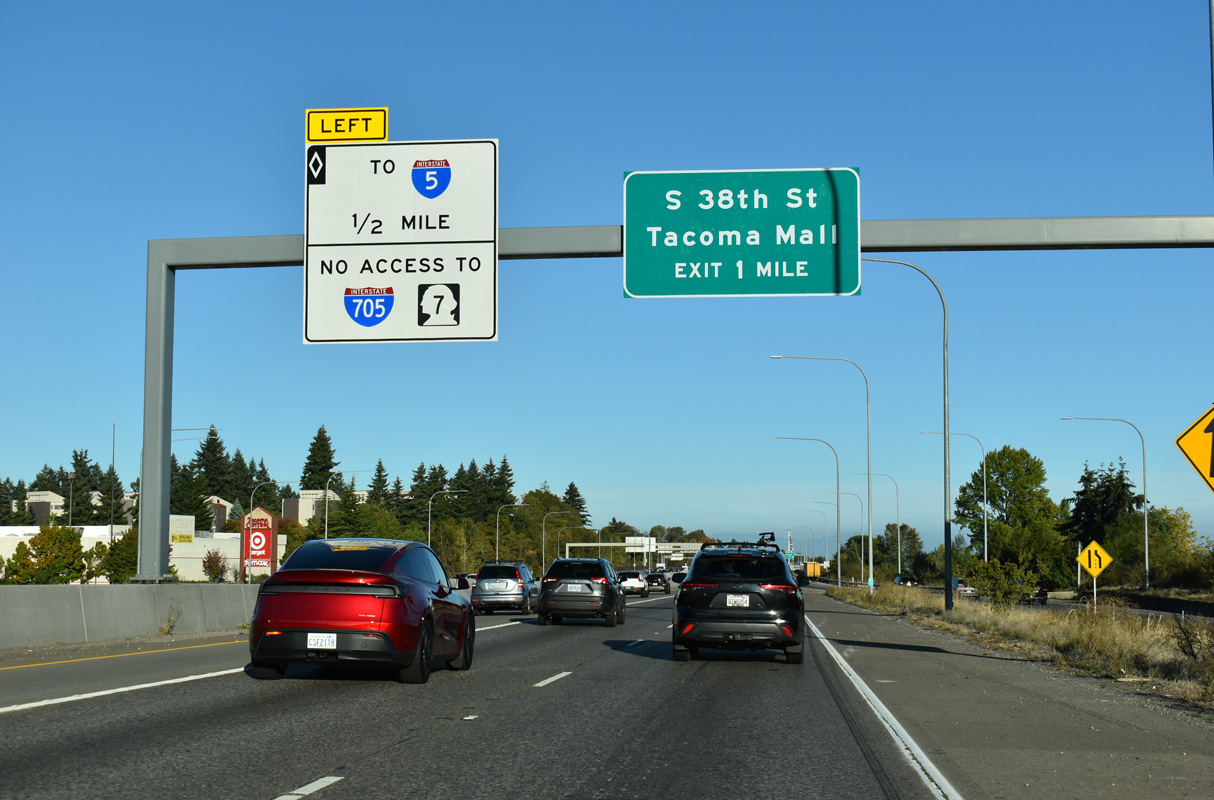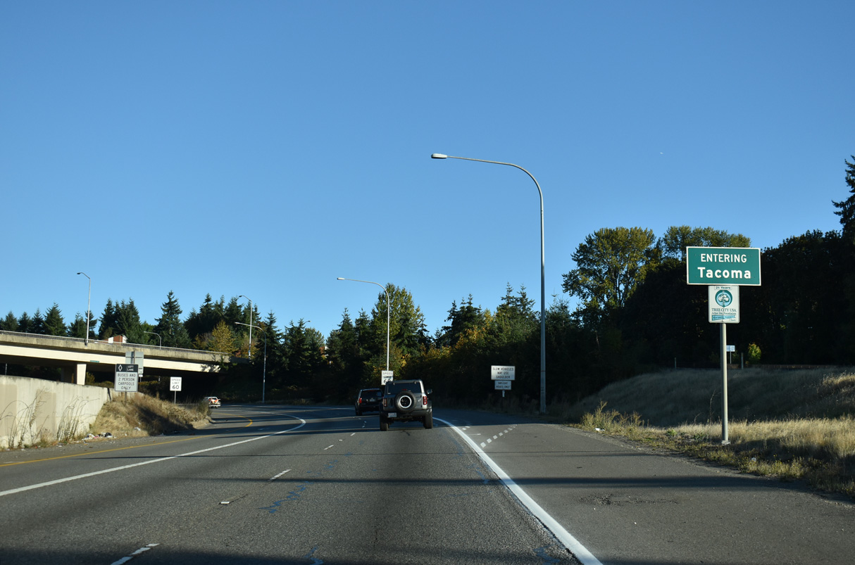 Exit 3 leaves SR 16 east for Pearl Street and SR 163 north. Pearl Street south continues to Alameda Avenue in the city of Fircrest.