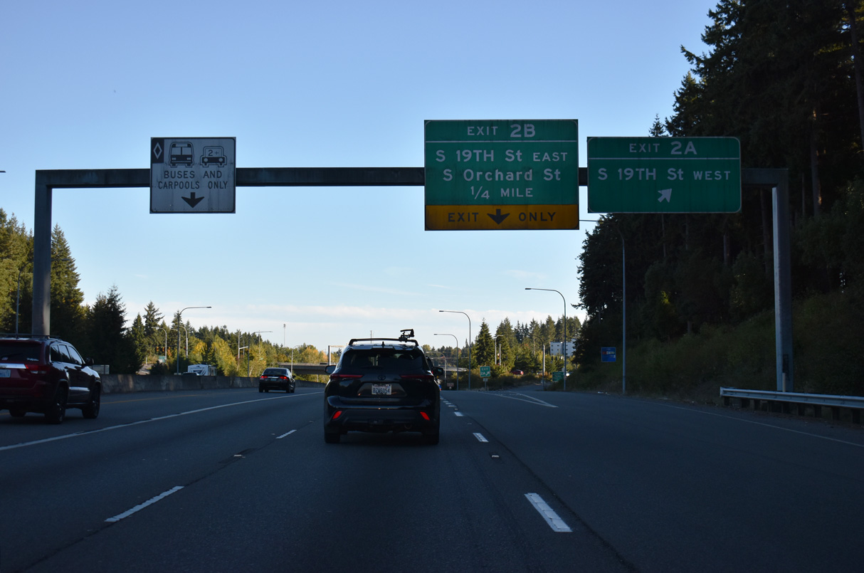 Exit 2 B loops west to S Orchard Street. Orchard Street leads south to Fircrest and Manitou.