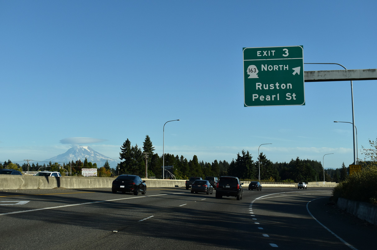 SR 163 (Pearl Street) commences northbound from SR 16 at Exit 3. SR 163 travels 3.37 miles to the WSDOT Ferry Point Defiance Terminal.