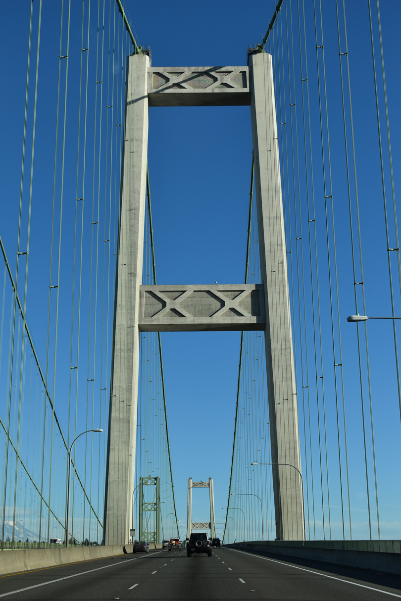 5,979 feet in length, the westbound bridge carried two-way traffic until 2007, when the eastbound span opened to traffic. Tolls were collected for the bridge opened in 1950 until 1965 ("Tacoma Narrows Bridge", 2010).